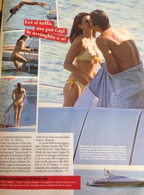 Il legame fra la D’Amico e Buffon era stato svelato lo scorso gennaio proprio dal direttore di “Chi”, Alfonso Signorini, all’“Alfonso Signorini show” su Rmc, e il settimanale aveva pubblicato le foto esclusive del loro primo bacio, di un loro incontro notturno, e della visita che la D’Amico aveva fatto a Buffon vicino a Coverciano prima della partenza per i Mondiali. Ora queste immagini, che mostrano i due in barca in atteggiamenti molto affettuosi, sono l’ulteriore prova del loro legame.