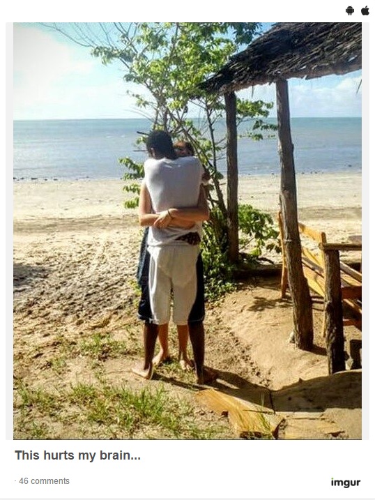 ROMA – Questa illusione ottica fa accendere il cervello. Alla prima occhiata infatti, sembra trovarsi davanti a due ragazzi che si abbracciano. Guardando con più attenzione, ci si accorge di essere davanti a qualcos’altro. La foto è stata pubblicata per la prima volta su un sito internet russo a settembre 2014 ed ora è stata ripubblicata da Reddit. Gli utenti, dopo la diffusione della foto hanno cominciato a capire cosa c’è che non van ello scatto.