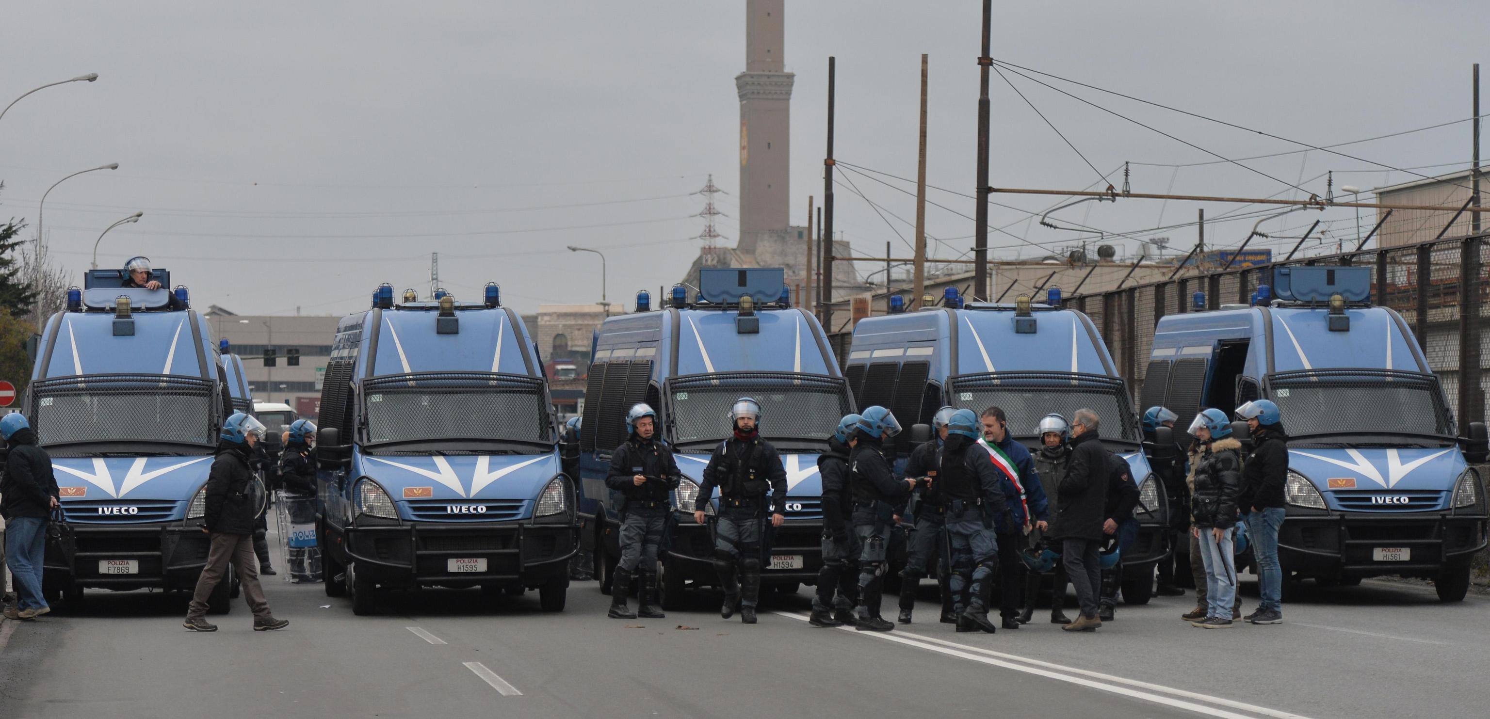 GENOVA – Ilva, poliziotta si toglie casco e stringe mano a lavoratore. Una funzionaria di polizia, dopo essersi tolta il casco, stringe la mano a un lavoratore, come segno di distensione tra manifestanti e polizia alla manifestazione dei lavoratori Ilva a Genova che si è svolta oggi 27 gennaio. Davanti a questo gesto i lavoratori, che erano arrivati faccia a faccia con gli agenti in tenuta antisommossa, hanno fatto un passo indietro. E’ il terzo giorno di proteste a Genova per i lavoratori dello stabilimento Ilva di Cornigliano iscritti alla Fiom che manifestano a difesa dell’Accordo di Programma firmato nel 2005 che a fronte della chiusura della lavorazione a caldo prevedeva il mantenimento dei livelli occupazionali e di reddito.