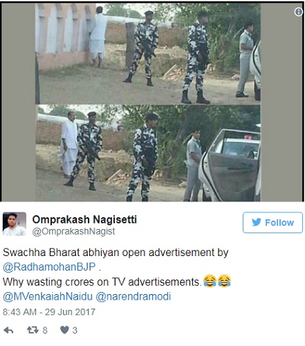 Singh, un forte sostenitore dell’attuale primo ministro indiano Narendra Modi, è stato additato e preso in giro su Twitter specialmente dagli oppositori della politica dell’attuale governo indiano. Dopo aver fatto pipì, come mostrano le immagini si cui parla anche il Tribune, il ministro 68enne e risalito in auto.