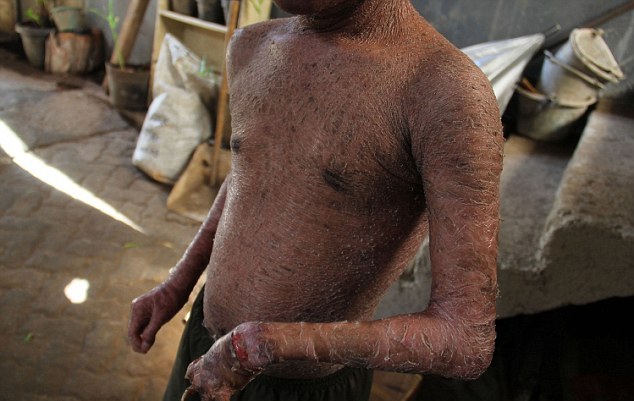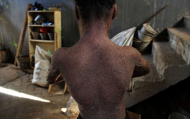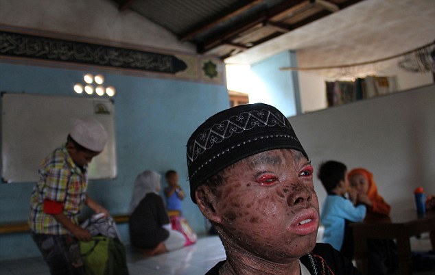 Il fotografo Nurcholis Anhari Lubis, 35 anni, ha voluto documentare con alcuni scatti le condizioni del ragazzino ed ha descritto la pelle del ragazzo “squamosa come un serpente che sta per perdere la pelle”.