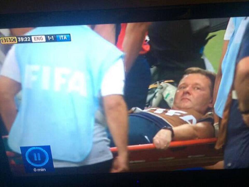 MANAUS, BRASILE – Episodio singolare al 39′ di Inghilterra-Italia, partita disputata a Manaus (Amazzonia) valida per la prima giornata fase a gironi dei Mondiali di Brasile 2014. Il fisioterapista della Nazionale Inglese è andato ko in seguito all’esultanza, troppo animata, dopo la rete del momentaneo pareggio messa a segna dal calciatore del Liverpool Sturridge.