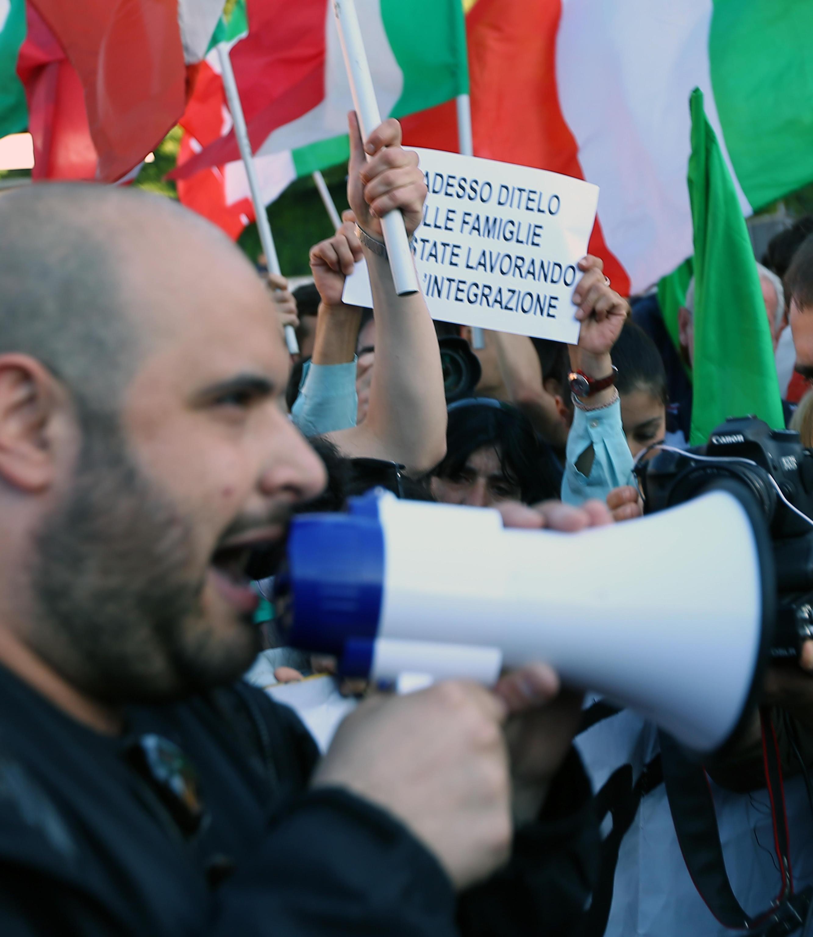 Oltre ai militanti di ‘Noi con Salvini’ in piazza anche alcuni militanti dell’estrema destra radunati dietro lo striscione ‘Nessuno tocchi il mio popolo’. Tra gli slogan urlati, ‘Boia chi molla è il mio grido di battaglia’, ‘Diritto alla casa, diritto al lavoro non ce lo abbiamo noi non ce lo avranno loro’. A presidiare la piazza le forze dell’ordine in tenuta anti-sommossa. Le foto Ansa.