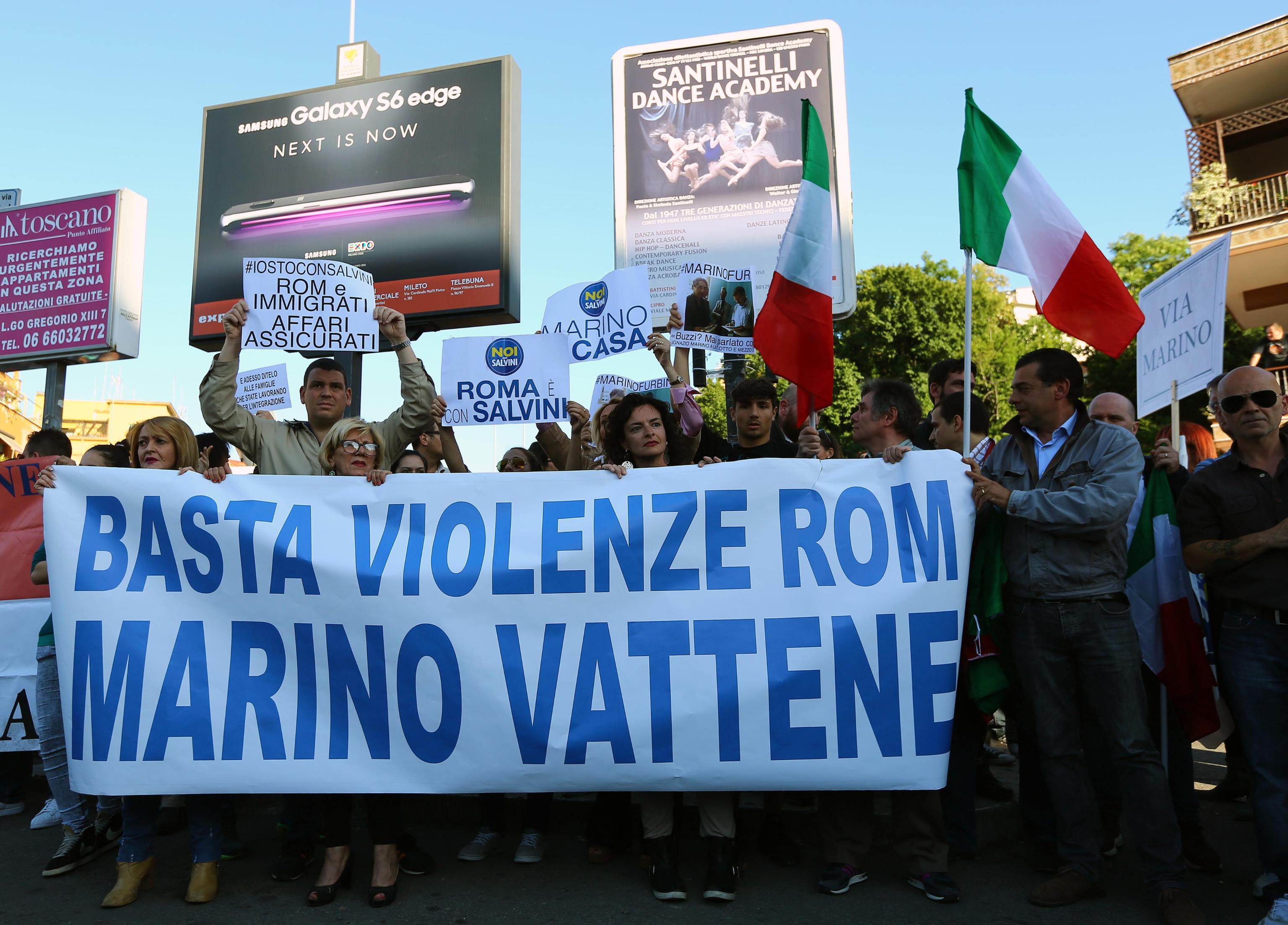 E tra i commenti più duri “Riprendiamoci Roma. Roma è nostra”; i campi rom? “Damoje foco”. In piazza anche esponenti di ‘Noi con Salvini’ – i ‘leghisti’ hanno srotolato lo striscione ‘Basta violenze rom. Marino vattene’ – Ncd e Fratelli d’Italia che ha avviato una raccolta firme con l’obiettivo di smantellare tutti i campi rom della Capitale. E nel quartiere il dibattito si anima. “Era mejo Alemanno – sbotta un’anziana – Ma ‘ndo sta ‘sto sindaco? Vuole dargli anche le case mentre qui siamo abbandonati”. Alla fermata del bus, davanti ai mazzi di fiori lasciati in ricordo della vittima, va in scena un battibecco tra una signora e un gruppetto di ragazzi. “I rom e gli zingari? Devono essere buttati fuori dall’ Italia – tuona la donna – E se ci fosse stata tua madre qui per terra? Questa è feccia che non ha voglia di integrarsi. A 17 anni si va a scuola non in auto a 180 all’ora. Qui c’è bisogno di legalità. Non di altro”. “Vabbè signora qui così però torniamo al medioevo” chiosa uno dei giovani prima di salire sul bus. Intanto alla fermata è stato lasciato un cartello per il sindaco Marino. “I tuoi cari amici zingari portali a casa tua” la frase scritta. E diversi passando di lì e leggendolo commentano: “Hanno fatto bene a scriverlo. Sono d’accordo”. Altri invece aggiungono: “Non è tutta colpa di Marino. I problemi sono sempre gli stessi ma nessuno li risolve”.