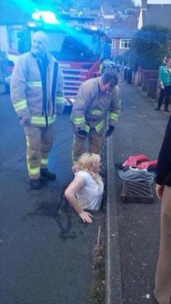 Per sua fortuna, sono arrivati i vigili del fuoco che l’hanno disincagliata. Per sua sfortuna, qualcuno l’ha fotografata e l’ha fatta finire su Twitter. Le foto sono diventate virali in men che non si dica.