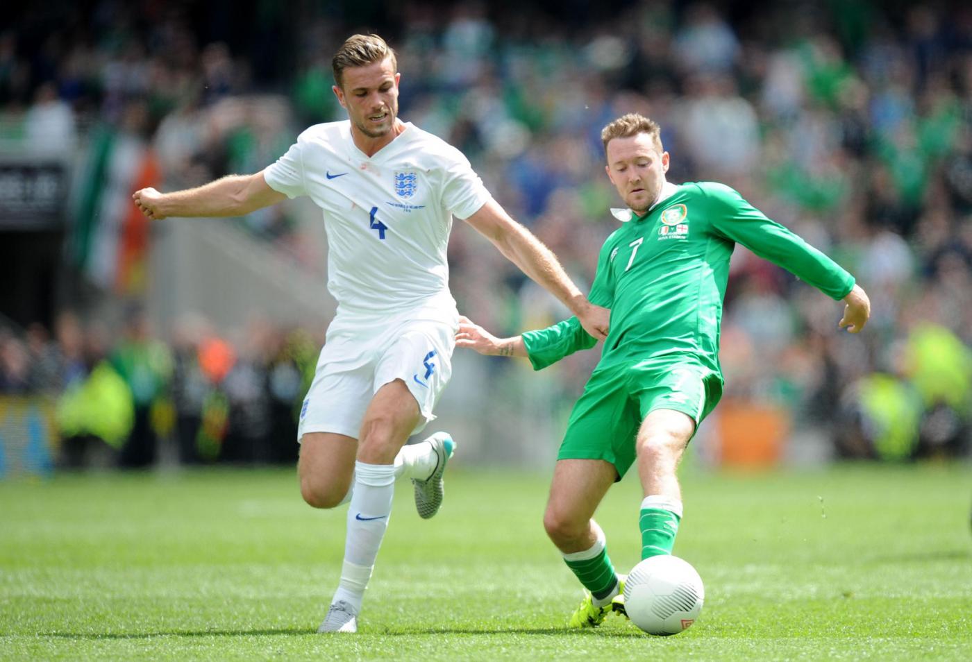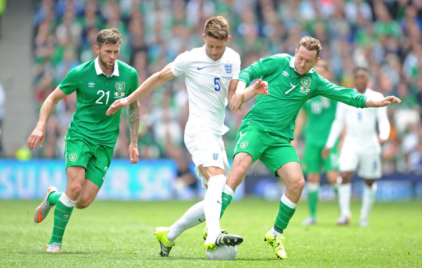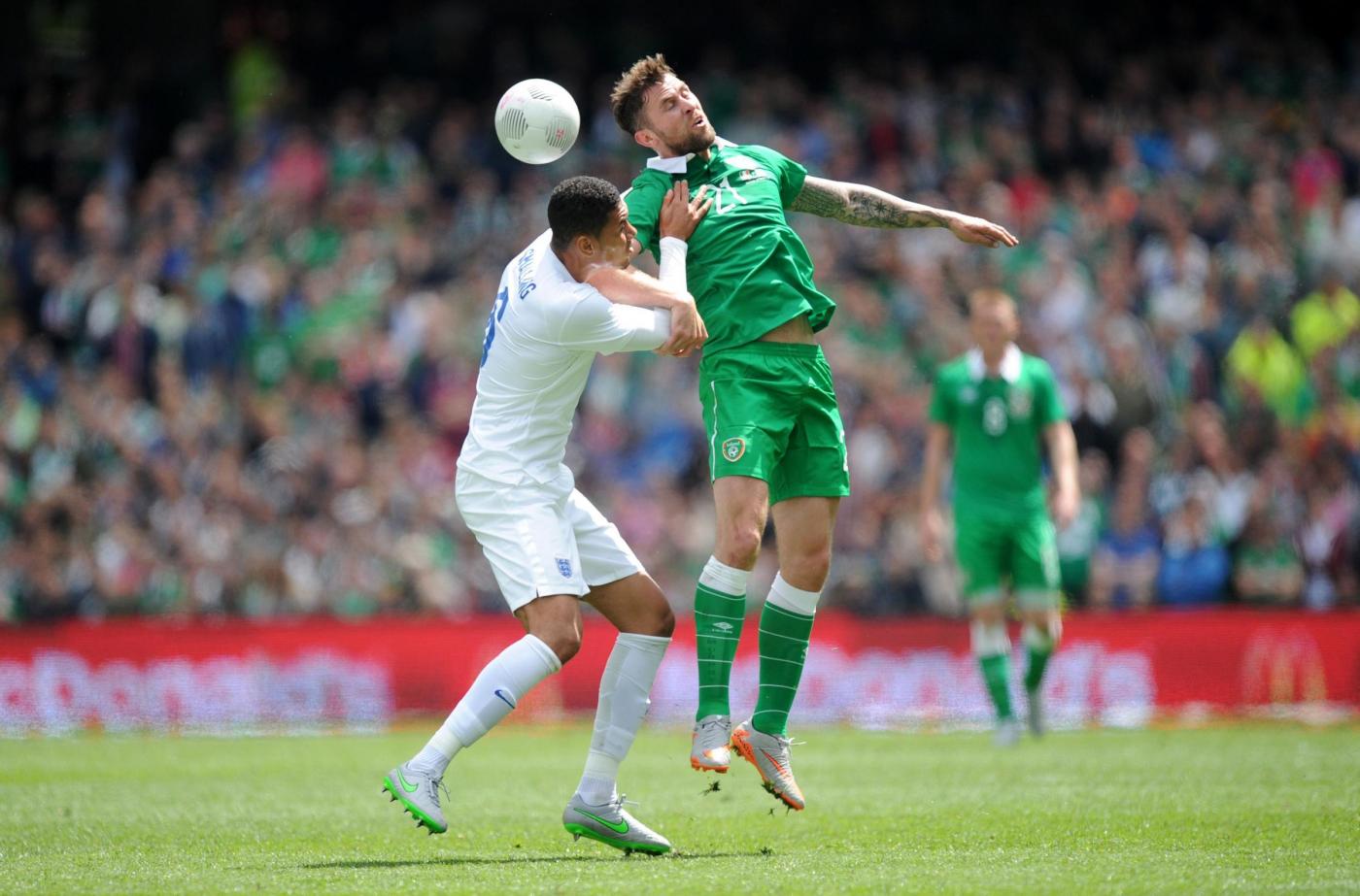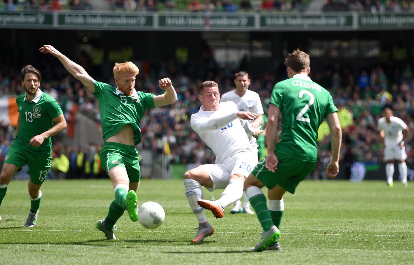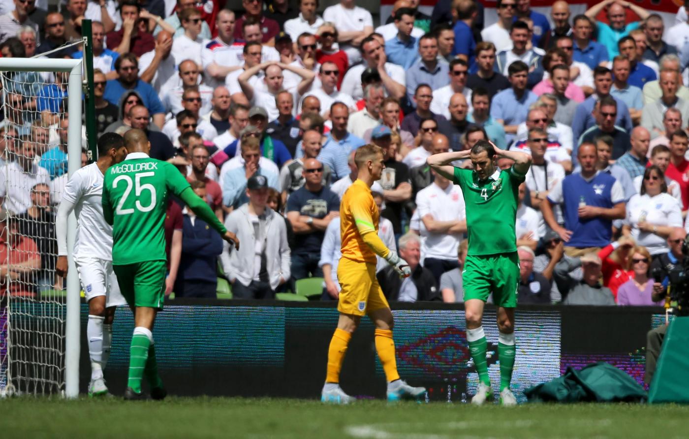IRLANDA (4-4-2) : Westwood 6,5 (dal 16’ s.t. Given 6); Coleman 6, O’Shea 6,5 (dal 17’ s.t. McShane 6), Wilson 6, Brady 5,5; Hendrick 5,5, Whelan 5,5 (dal 18’ s.t. Arter 6), McCarthy 5,5 (dal 1’ s.t. McClean 5,5), McGeady 5,5; Murphy 5 (dall’11’ s.t. Walters 6,5 ), McGoldrick 5,5 (dal 1’ s.t. Long 6). (Keogh, Christie, Pearce, Ward, Quinn, Meyler, Hoolahan). All. O’Neill 5,5. INGHILTERRA (4-3-3) : Hart 6; Jones 6, Cahill 6 (dal 29’ s.t. Jagielka 6), Smalling 6, Bertrand 6; Henderson 6, Wilshere 5,5 (dal 21’ s.t. Barkley 6), Milner 5; Sterling 5,5 (dal 21’ s.t. Townsend 6,5), Rooney 5,5 (dal 29’ s.t. Wardy 5), Lallana 5 (dal 37’ s.t. Walcott s.v.). (Green, Clyne, Gibbs, Delph, Cleverley, Austin). All. Hodgson 5. ARBITRO Hunter 6,5. NOTE spettatori 43.460. Tiri in porta 4-4. Tiri fuori 3-5. Angoli 7-5. In fuorigioco 1-0. Recuperi: 1’ p.t.; 3’ s.t.