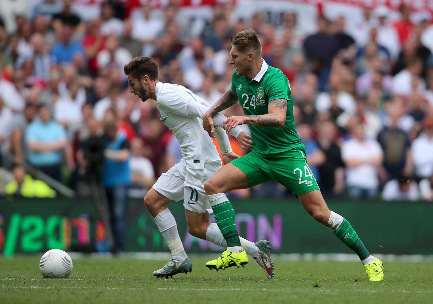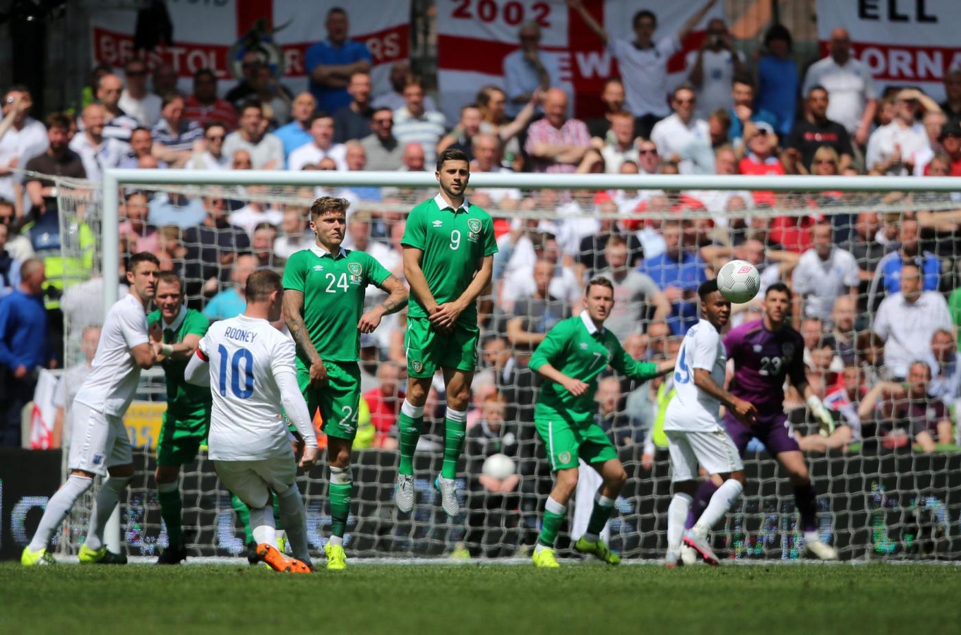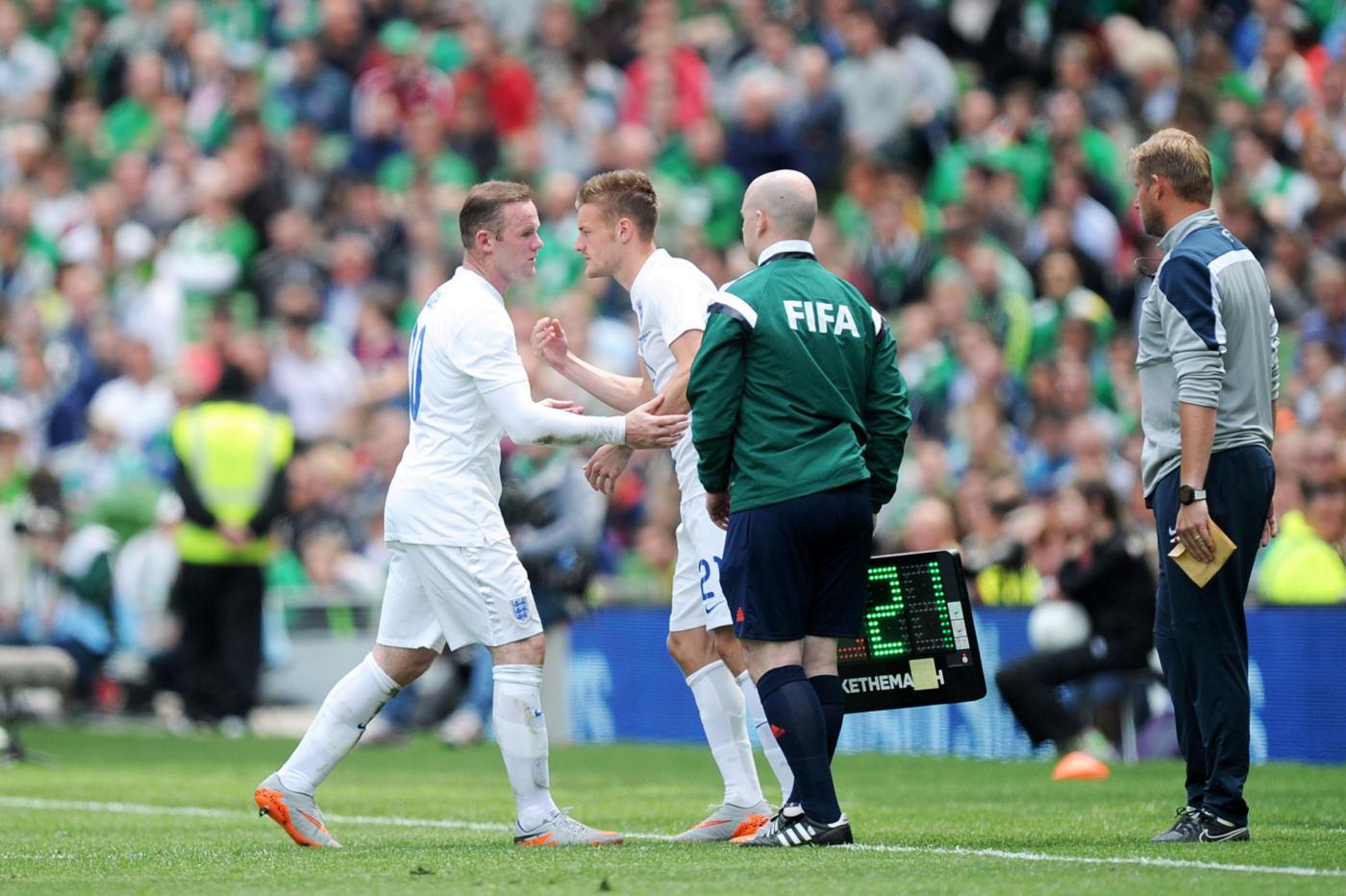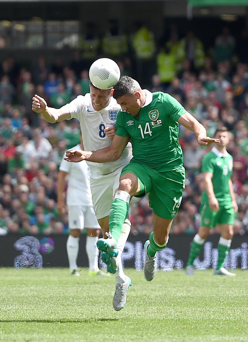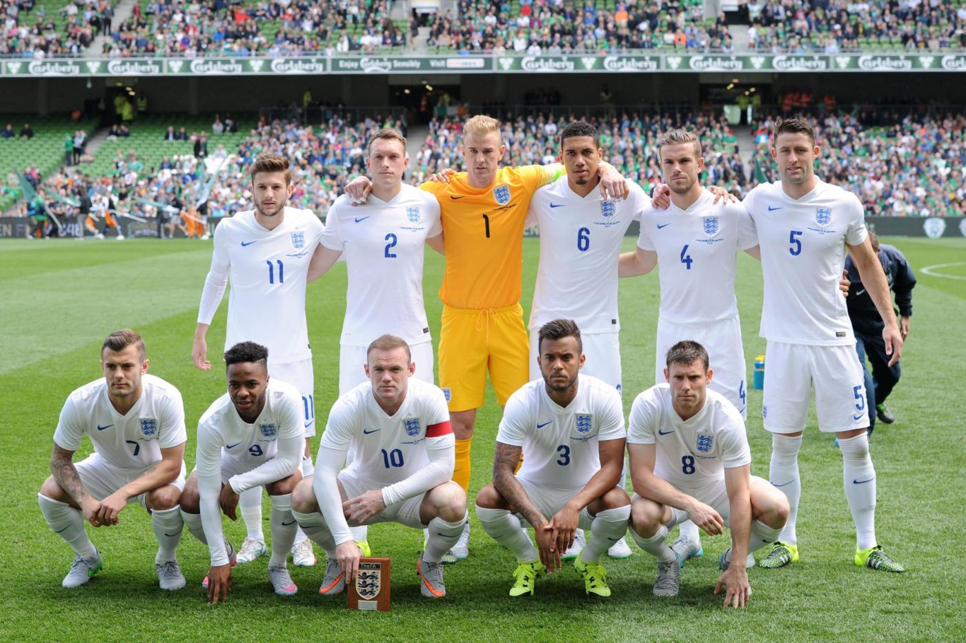 IRLANDA (4-4-2) : Westwood 6,5 (dal 16’ s.t. Given 6); Coleman 6, O’Shea 6,5 (dal 17’ s.t. McShane 6), Wilson 6, Brady 5,5; Hendrick 5,5, Whelan 5,5 (dal 18’ s.t. Arter 6), McCarthy 5,5 (dal 1’ s.t. McClean 5,5), McGeady 5,5; Murphy 5 (dall’11’ s.t. Walters 6,5 ), McGoldrick 5,5 (dal 1’ s.t. Long 6). (Keogh, Christie, Pearce, Ward, Quinn, Meyler, Hoolahan). All. O’Neill 5,5. INGHILTERRA (4-3-3) : Hart 6; Jones 6, Cahill 6 (dal 29’ s.t. Jagielka 6), Smalling 6, Bertrand 6; Henderson 6, Wilshere 5,5 (dal 21’ s.t. Barkley 6), Milner 5; Sterling 5,5 (dal 21’ s.t. Townsend 6,5), Rooney 5,5 (dal 29’ s.t. Wardy 5), Lallana 5 (dal 37’ s.t. Walcott s.v.). (Green, Clyne, Gibbs, Delph, Cleverley, Austin). All. Hodgson 5. ARBITRO Hunter 6,5. NOTE spettatori 43.460. Tiri in porta 4-4. Tiri fuori 3-5. Angoli 7-5. In fuorigioco 1-0. Recuperi: 1’ p.t.; 3’ s.t.