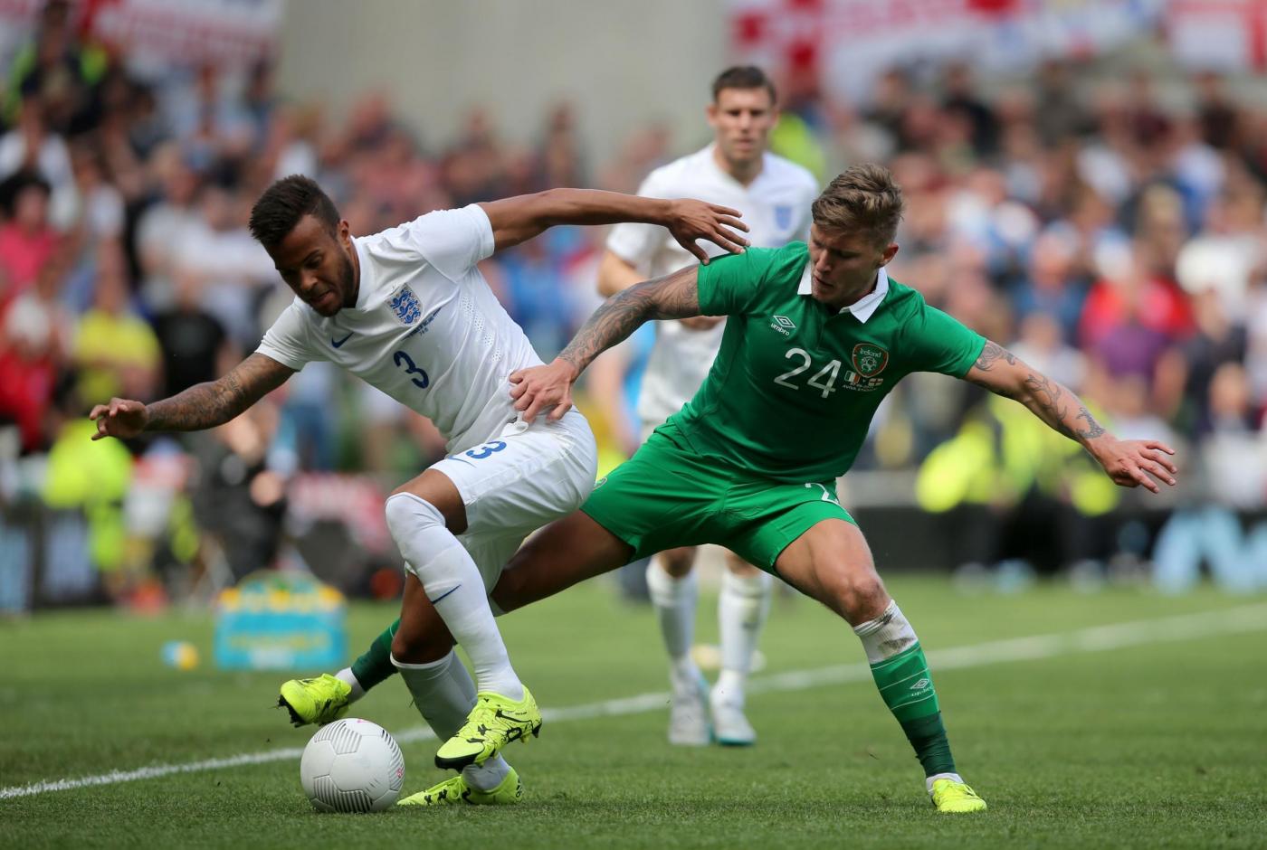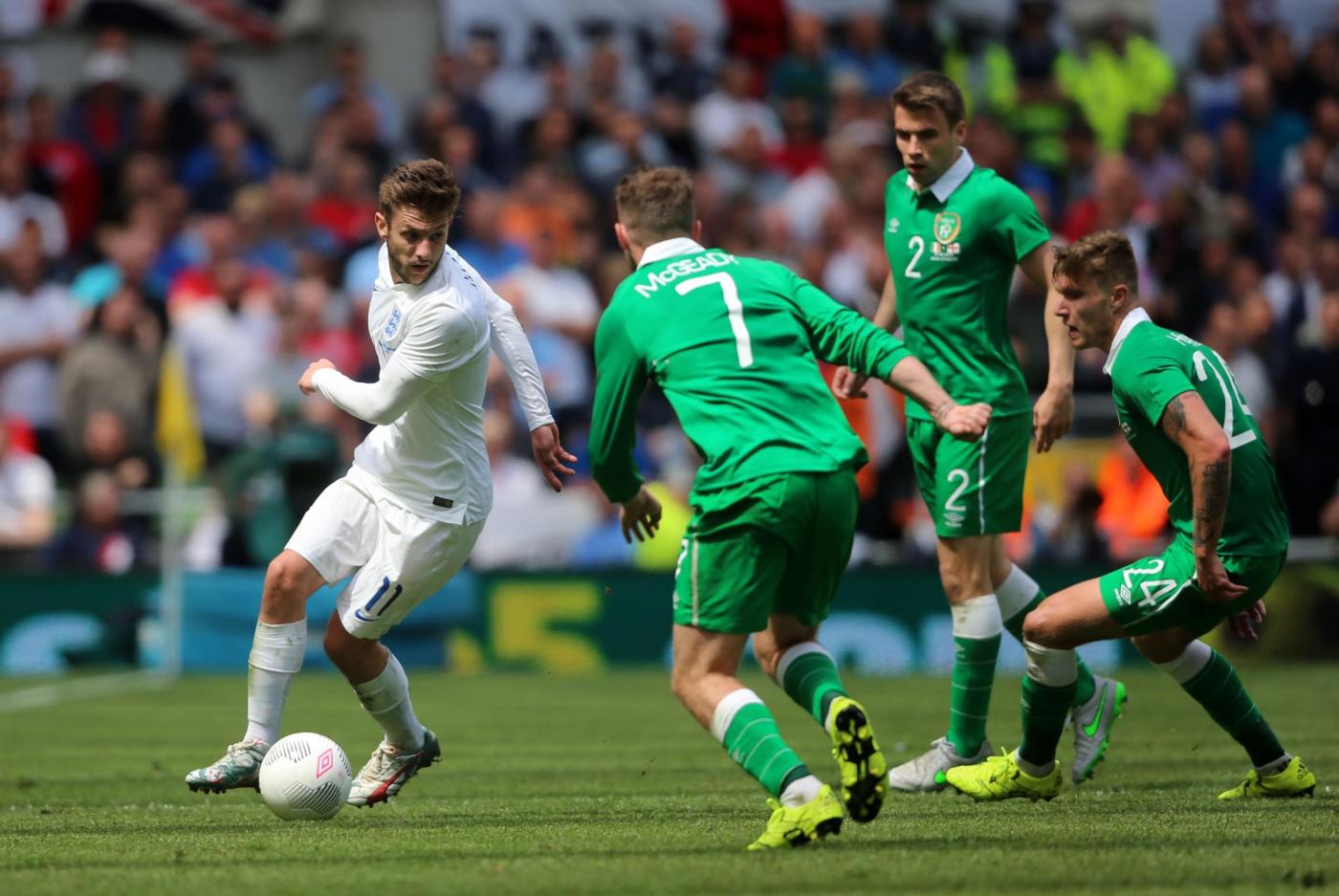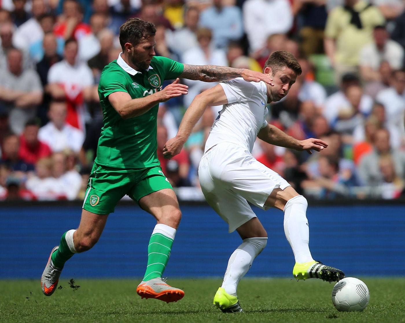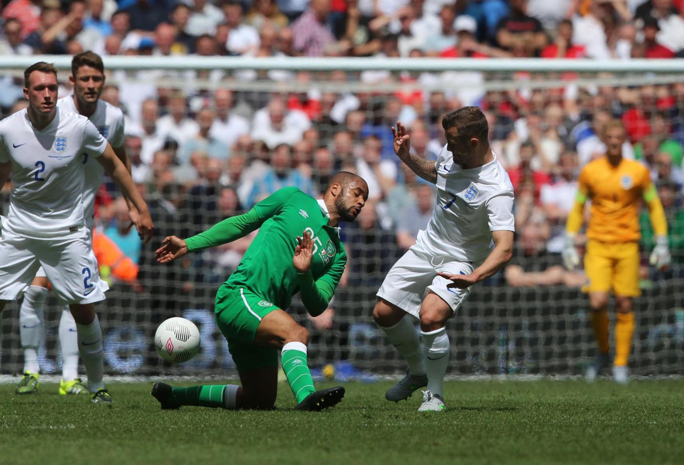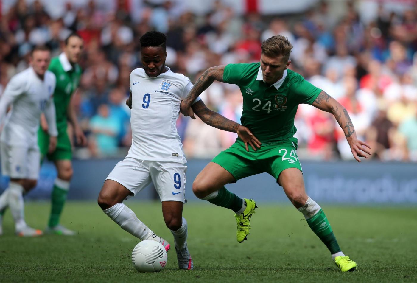 IRLANDA (4-4-2) : Westwood 6,5 (dal 16’ s.t. Given 6); Coleman 6, O’Shea 6,5 (dal 17’ s.t. McShane 6), Wilson 6, Brady 5,5; Hendrick 5,5, Whelan 5,5 (dal 18’ s.t. Arter 6), McCarthy 5,5 (dal 1’ s.t. McClean 5,5), McGeady 5,5; Murphy 5 (dall’11’ s.t. Walters 6,5 ), McGoldrick 5,5 (dal 1’ s.t. Long 6). (Keogh, Christie, Pearce, Ward, Quinn, Meyler, Hoolahan). All. O’Neill 5,5. INGHILTERRA (4-3-3) : Hart 6; Jones 6, Cahill 6 (dal 29’ s.t. Jagielka 6), Smalling 6, Bertrand 6; Henderson 6, Wilshere 5,5 (dal 21’ s.t. Barkley 6), Milner 5; Sterling 5,5 (dal 21’ s.t. Townsend 6,5), Rooney 5,5 (dal 29’ s.t. Wardy 5), Lallana 5 (dal 37’ s.t. Walcott s.v.). (Green, Clyne, Gibbs, Delph, Cleverley, Austin). All. Hodgson 5. ARBITRO Hunter 6,5. NOTE spettatori 43.460. Tiri in porta 4-4. Tiri fuori 3-5. Angoli 7-5. In fuorigioco 1-0. Recuperi: 1’ p.t.; 3’ s.t.