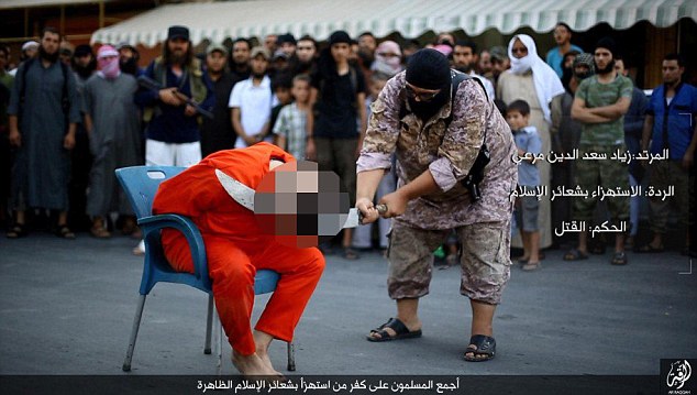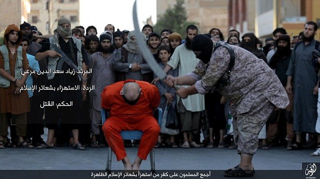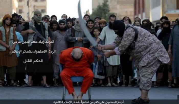 l’uomo è stato condannato alla decapitazione con l’accusa di aver criticato l’Islam, esattamente di aver deriso le ritualità dell’Islam. Questo suo comportamento l’ha portato ad essere accusato di apostasia e condannato a morte davanti ai bambini. L’azione è un monito per tutti quelli che osano trasgredire gli ordini dello Stato Islamico. Nelle immagini si vede il boia che prima legge la sentenza e poi impugna la scimitarra e decapita il prigioniero. Le immagini pubblicate dal Daily Mail, sono sconsigliate ad un pubblico sensibile.