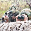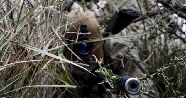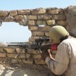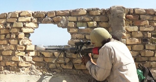 In una di queste immagini si vede un miliziano in ginocchio su un tetto mentre prende la mira con un lungo fucile. Un’altra mostra un cecchino che fa fuoco attraverso un muro.