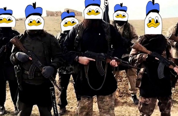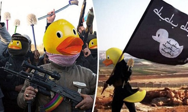 ROMA – Gli hacker del collettivo 4chan hanno lanciato una campagna sul web photoshoppando le foto e le immagini dei miliziani dell’Isis in trionfo, sostituendo i loro volti barbuti con quelli delle papere di gomma gialla con cui i bambini crescono facendo il bagnetto.