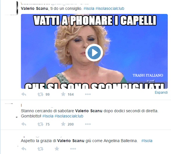 “lo ripeto #jesouisvalerioscanu @IsolaDeiFamosi”.