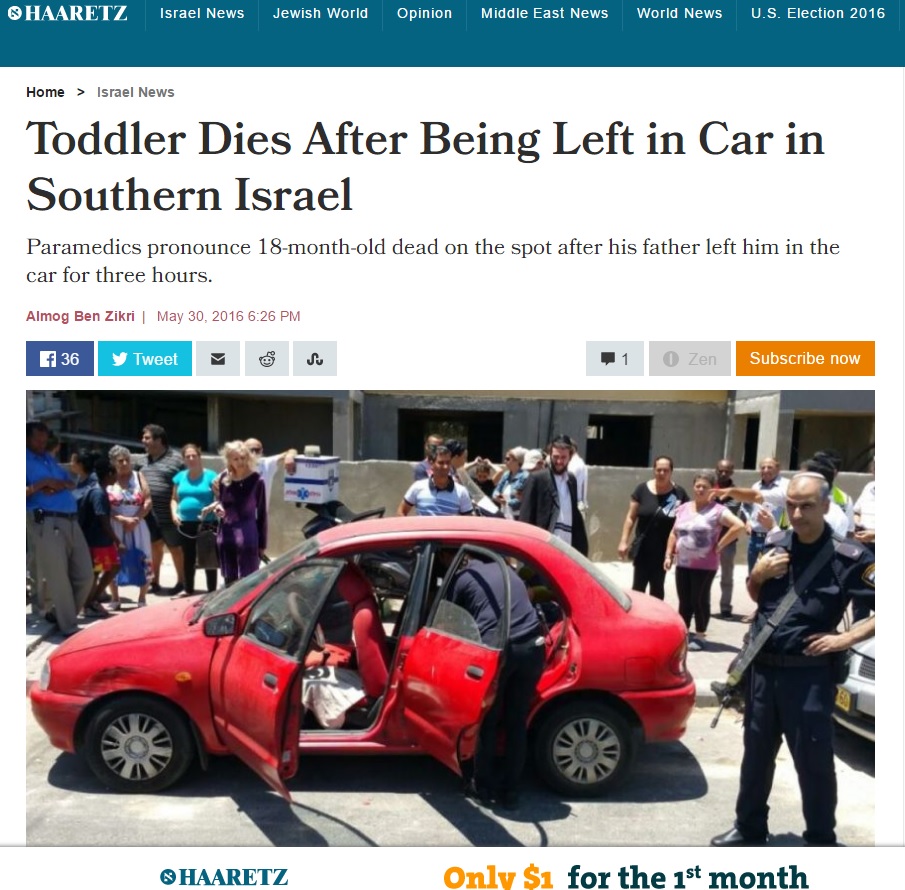 HURA – Un papà israeliano ha scordato in macchina i figli di 18 mesi e 3 anni. I due bambini, a causa del sole rovente che picchiava duro sull’auto, sono morti asfissiati dopo aver passato ore nel veicolo arroventato. La tragedia è avvenuta in un parcheggio del villaggio beduino di Hura nel Negev, nel sud di Israele. A dare l’allarme sono stati alcuni passanti che si sono accorti dei bambini troppo tardi.