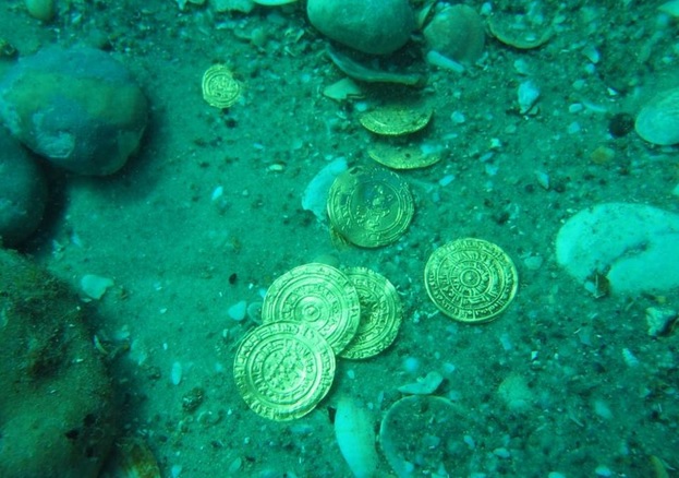 Ma c’è anche la possibilità che il carico di oro appartenesse ad una grande nave mercantile che faceva affari lungo le città costiere del Mediterraneo prima di affondare. Le monete sono di due tagli: dinaro e quarto di dinaro. Sul conio hanno stampigliate le insegne di vari posti del Califfato dei Fatimidi, grande impero che copriva gran parte del Medio Oriente, dell’Africa del nord e la Sicilia. I Fatimidi, partiti dalla Siria, conquistarono l’Egitto facendo del Cairo la loro capitale: regnarono dal 909 al 1171. La maggior parte delle monete hanno il segno del Califfo Al-Hakim (996-1021) e di suo figlio Al-Zahir (1021-1036) e furono coniate soprattutto in Egitto e nel Nord Africa.