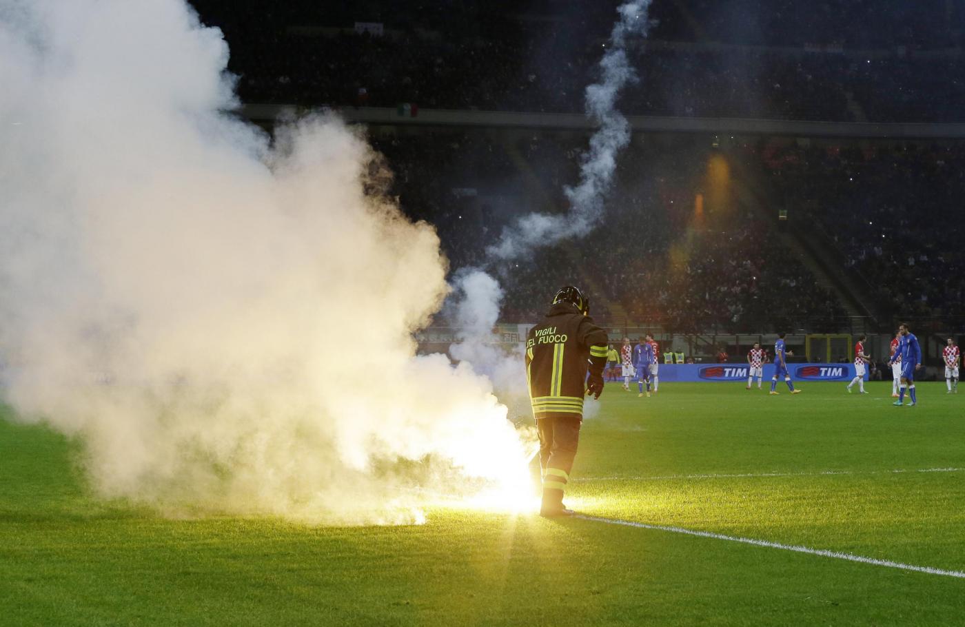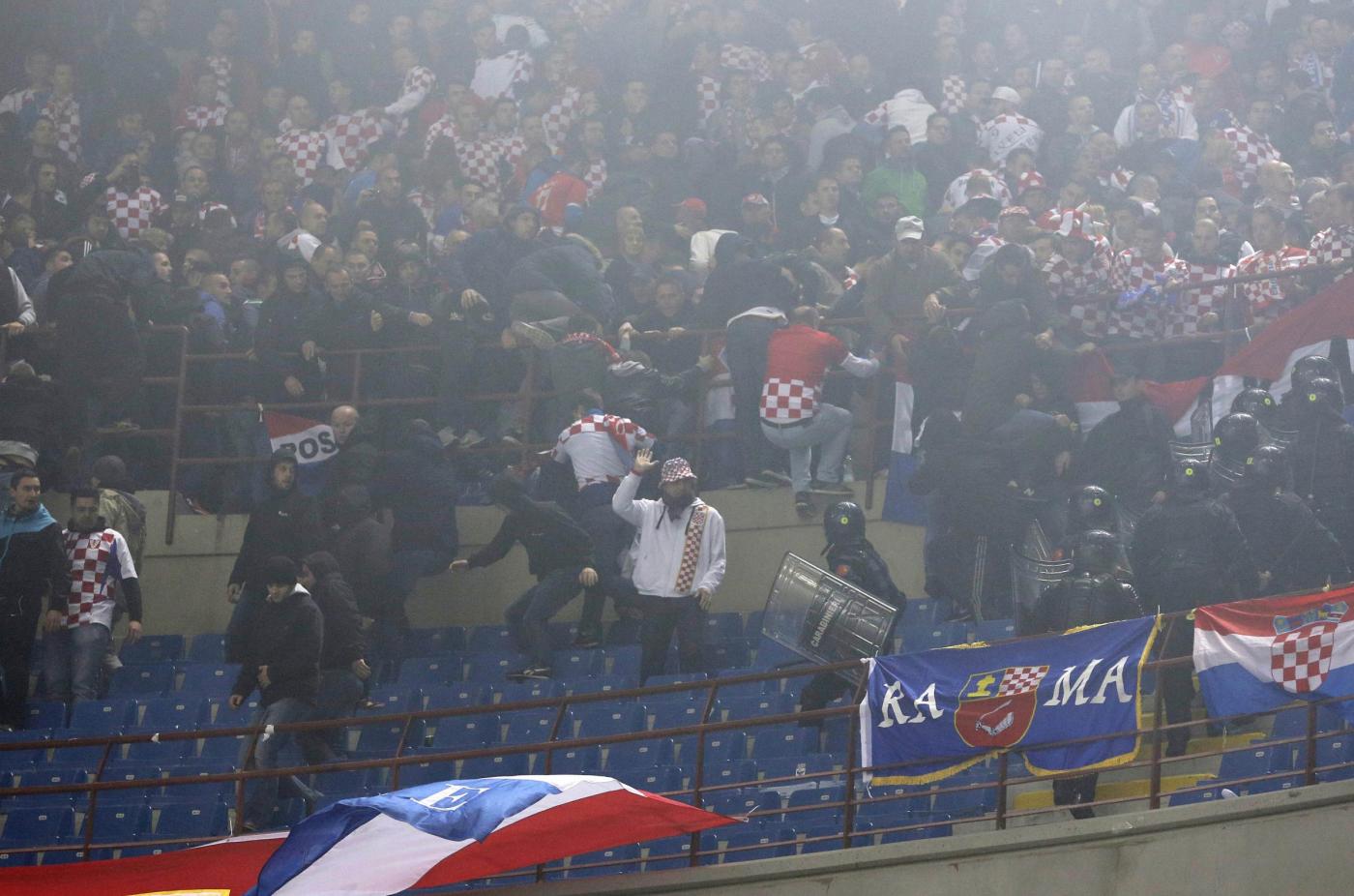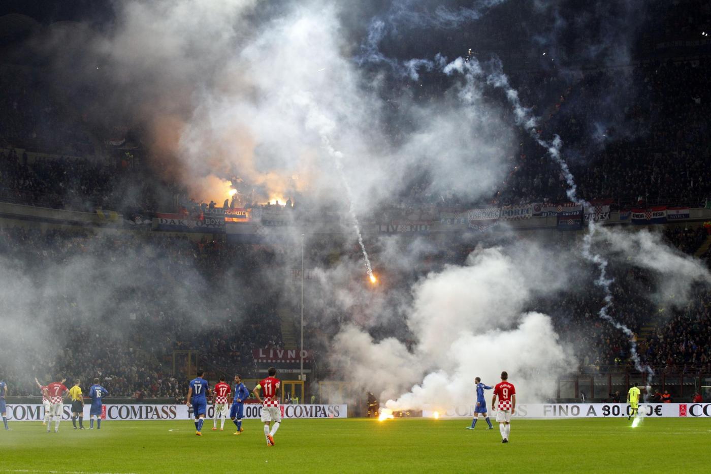 MILANO – Per qualche minuto a San Siro si e’ temuto di rivivere la folle notte di Genova del 13 ottobre 2010 quando Italia-Serbia non si giocò per la furia degli ultrà di Belgrado. Stavolta sono stati gli hooligan di Zagabria a provare a diventare protagonisti in un match di qualificazione europea, Italia-Croazia.