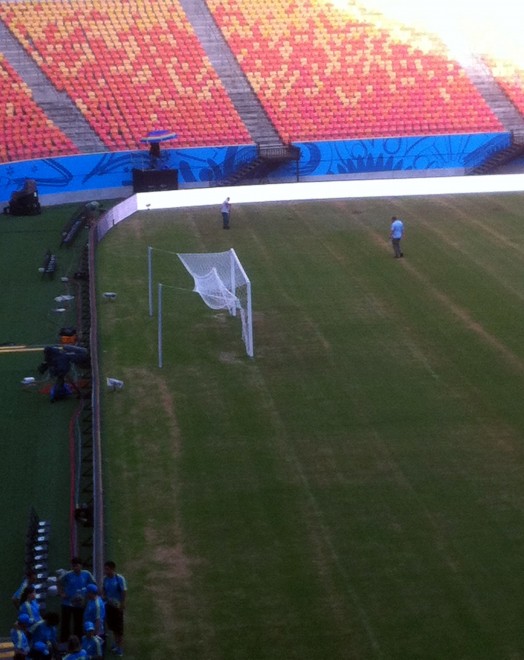 Il giornalista dell’agenzia stampa Afp, Colin Droniou, con uno smartphone è riuscito ad entrare di nascosto nello stadio di Manaus, dove l’Italia sfiderà l’Inghilterra nella sua prima partita in Brasile. L’erba del terreno di gioco appare in pessime condizioni a pochi giorni dall’incontro che si svolgerà sabato 14 a mezzanotte (ora italiana). E come se non bastasse sono previste piogge intense. Inoltre diverse sezioni dello stadio sembrano ancora lontane dall’essere ultimate.