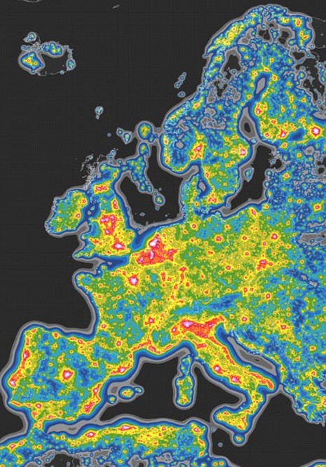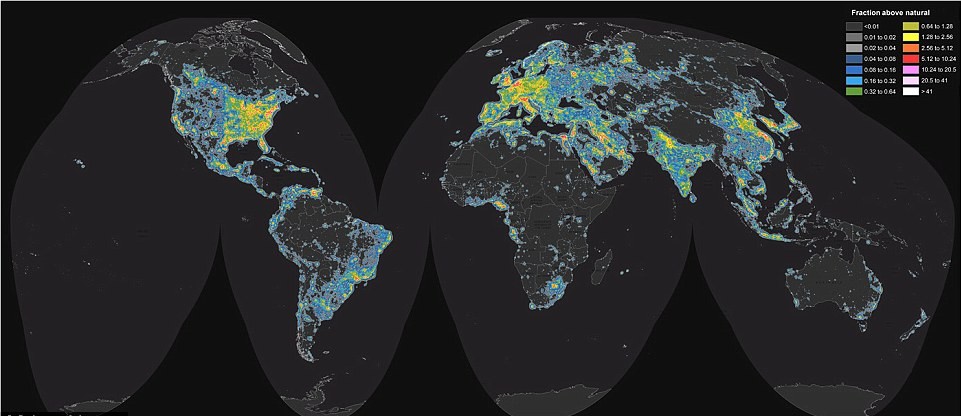 Il problema sono le luci artificiali, dato che un quarto della popolazione italiana vive sotto dei cieli decisamente abbaglianti, tanto da attivare le modalità di visione notturna. L’italiano Falchi ha collaborato con l’Agenzia statunitense per l’atmosfera e gli oceani, Noaa, il centro di ricerca geologica tedesco Gfz e l’università di Haifa, in Israele, per portare a termine una sorta di censimento dell’inquinamento luminoso e disegnarne così una mappa esaustiva.