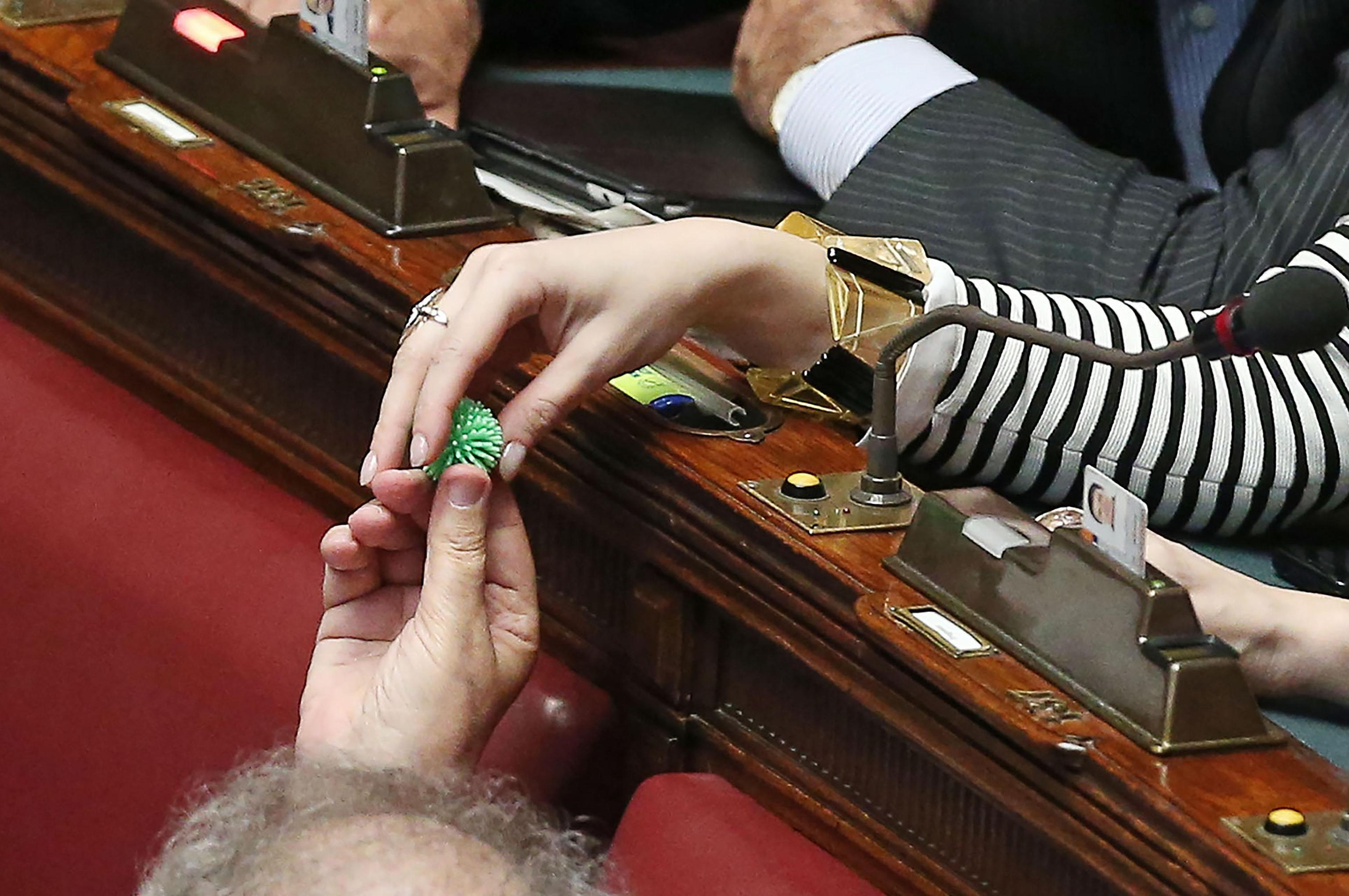 ROMA – Italicum alla Camera, deputati scoprono le palline colorate per fare giocare i gatti come mezzo per bloccare il tasto che permette di votare. Addio palline di carta, dunque. Alcuni deputati del Pd hanno “scoperto” le palline colorate in gomma per bloccare il tasto di voto: così non devono tenerlo premuto con il dito, specialmente nelle giornate di votazioni a raffica. E’ stata Rosy Bindi a scoprire la variopinta alternativa alle palline di carta.