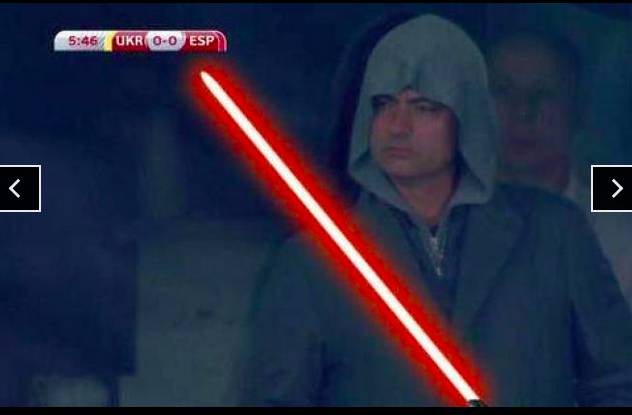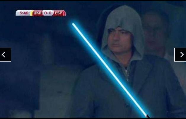 La foto dell’allenatore portoghese non è sfuggita al web, che lo ha paragonato in maniera ironica agli Jedi e all’imperatore Palpatine di Star Wars, al supereroe Arrow e perfino a Isabella di Castiglia.