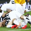 TORINO, JUVENTUS STADIUM – GiĆ campione, mai sazia. La Juventus scudettata non molla la corsa al record di punti: con l’1-0 sull’Atalanta – gol di Padoin, in campo tutte le ‘seconde linee’, compreso Pepe che in questo campionato non aveva mai giocato un solo minuto – vola a quota 96, ad un solo punto dal primato dell’Inter, vicinissima al tetto dei 100, l’unico obiettivo che la Roma può ancora negarle.