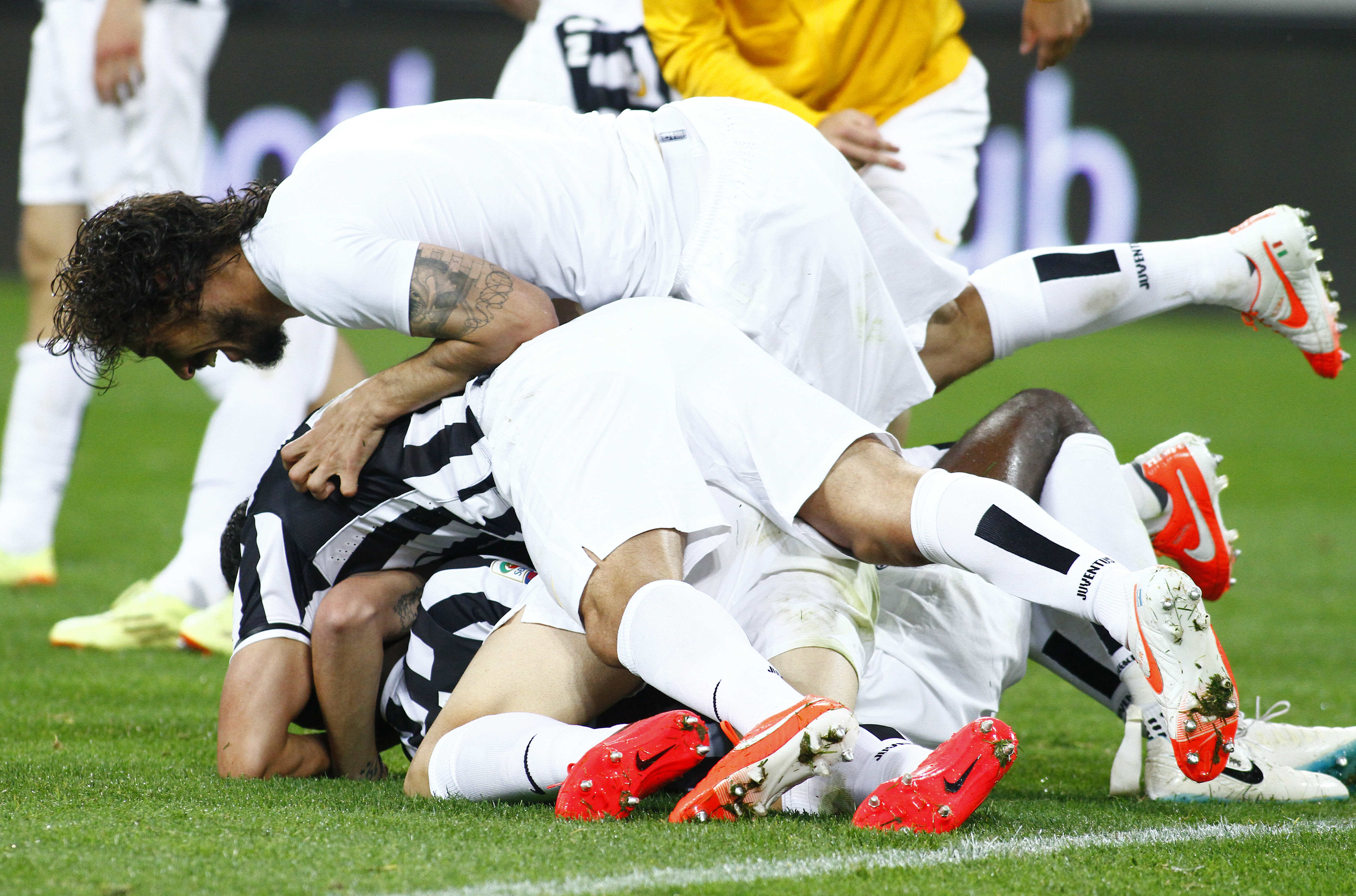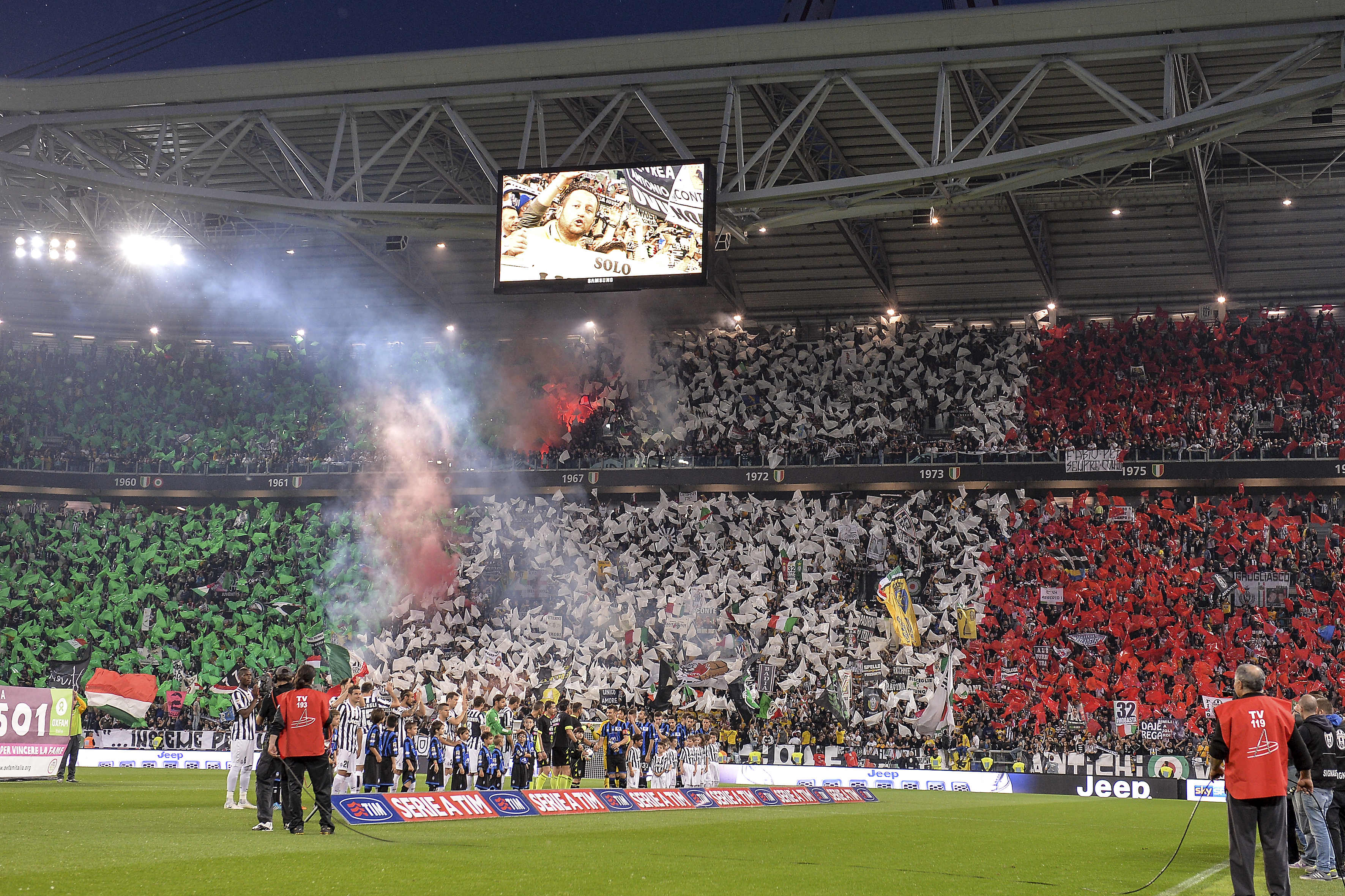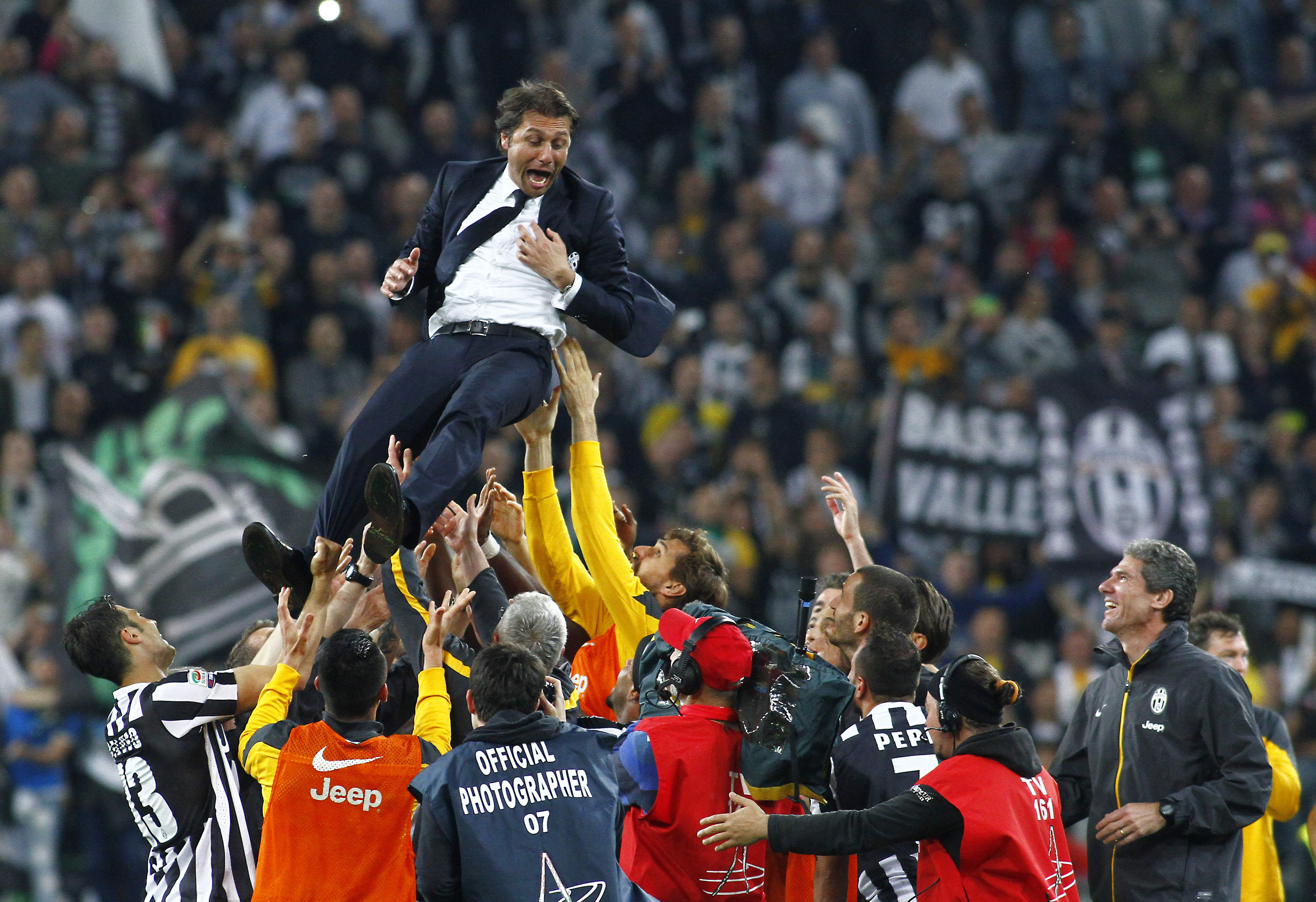 Finisce con il giro del campo di tutta la Juventus, al 18/o successo in casa su 18, dopo gli abbracci tra i giocatori, con Conte che porta per mano la figlioletta che saltella con la maglia bianconera numero 2. Tutto lo stadio applaude e urla “Siamo noi, i campioni dell’Italia siamo noi”, sul sottofondo di un brano di rock duro. Il tripudio finale ravviva finalmente una serata fino a quel momento un po’ anonima, con i rincalzi al posto dei big e un’Atalanta da tempo giĆ in vacanza o quasi. Anche ad uno scudetto, infatti, ci si può fare il callo, soprattutto se ĆØ il terzo consecutivo, il 32/o della storia (verdetti della giustizia sportiva a parte) ed era annunciato da tempo.