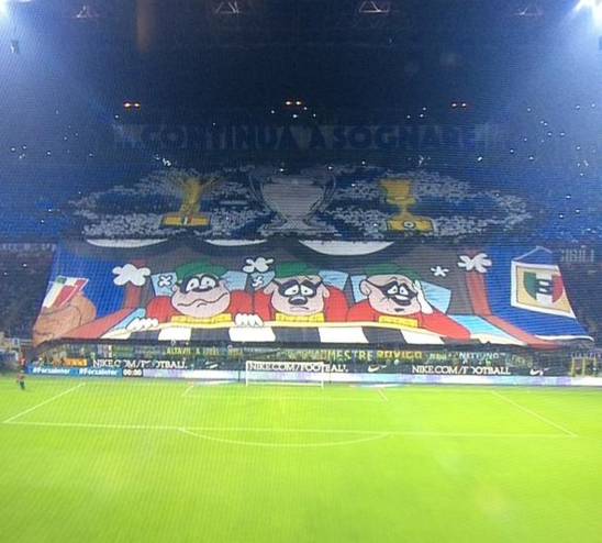 Lo striscione rappresentava la Juventus come la Banda Bassotti. Nei sacchi della Banda Bassotti c’erano gli scudetti rubati (secondo i tifosi dell’Inter) dalla Juventus.