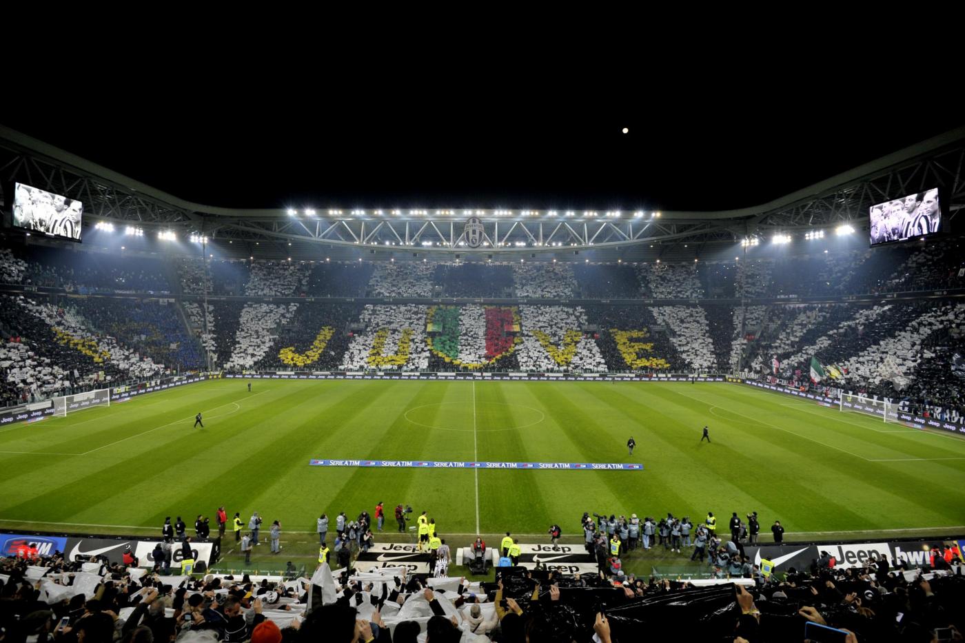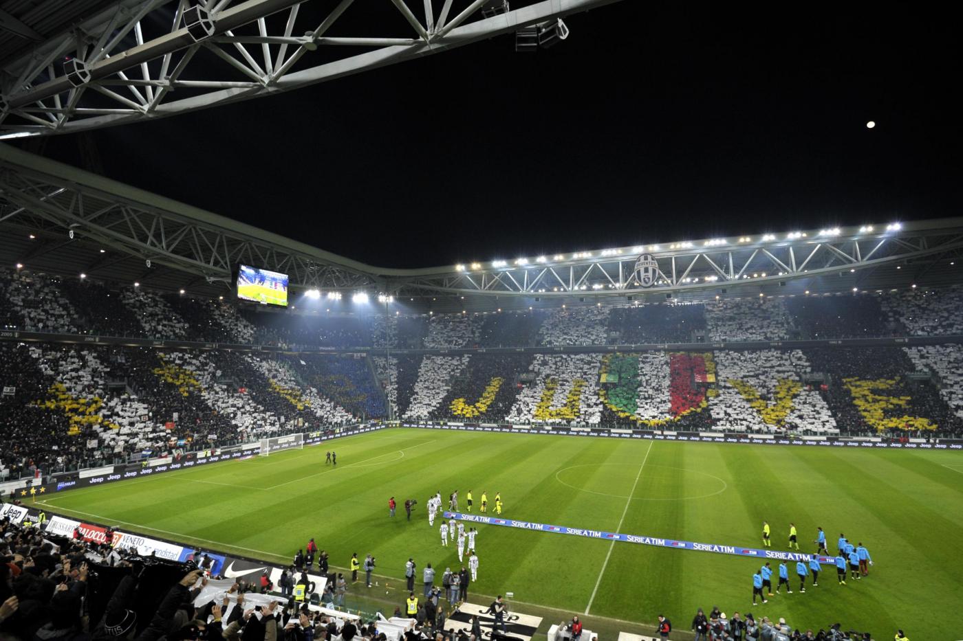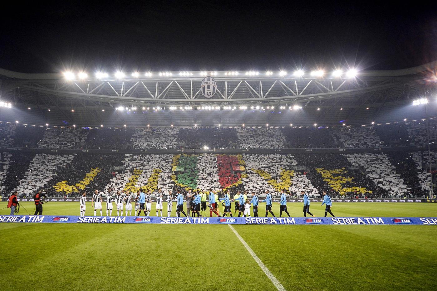 TORINO, JUVENTUS STADIUM – Juventus-Inter 1-1 ha regalato spettacolo in campo con i numeri di Carlos Tevez, Paul Pogba, Mauro Icardi ed Arturo Vidal ma anche sugli spalti dove i tifosi si sono scatenati prima, durante e dopo la partita con striscioni, coreografie e cori da “primi della classe”. Ecco le foto LaPresse aventi ad oggetto gli  spalti dello Juventus Stadium.Â