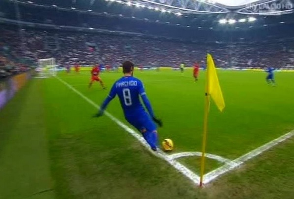 TORINO, JUVENTUS STADIUM – Il gol segnato da Patrice Evra nel corso di Juventus-Sampdoria, gara terminata sul punteggio di 1-1, era da annullare perchè il calcio d’angolo è stato battuto fuori dalla lunetta come dimostrato da questa immagine televisiva.