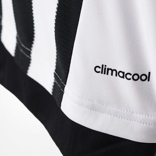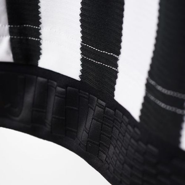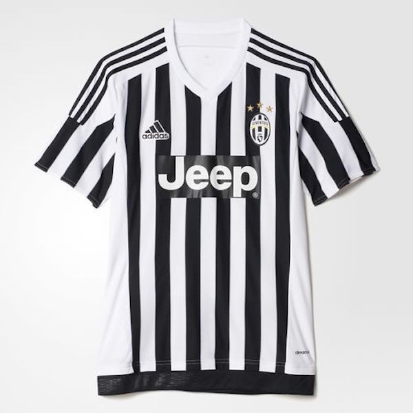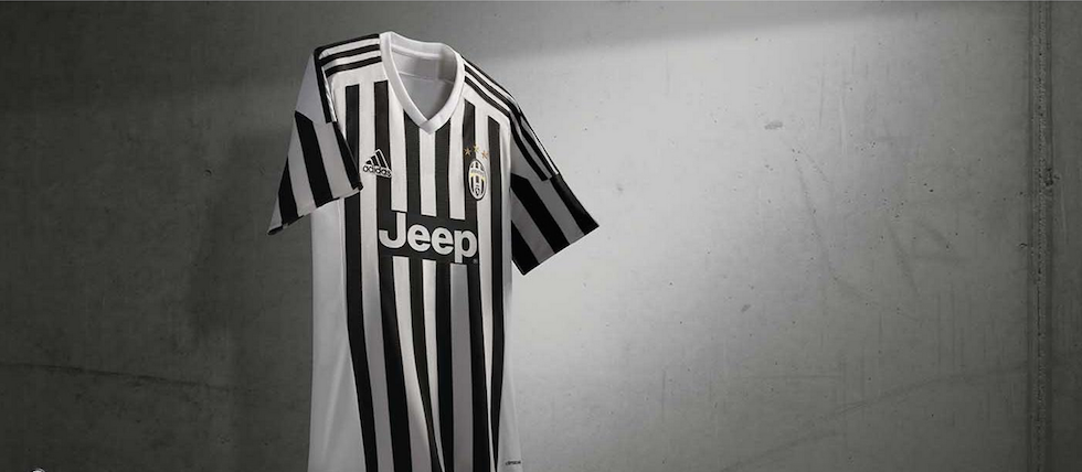 La maglia da casa è a strisce bianche e nere, ovviamente, abbinata a pantaloncini e calzettoni bianchi: le righe sono più strette, rispetto al passato; le tre strisce di Adidas nere sono sulle spalle; lo scollo è a V; nomi e numeri saranno neri su fondo bianco. La maglia da trasferta è rosa, come era nei primi anni della Juventus, con bande più scure. Ci sono le tre stelle, che rappresentano i 31 scudetti vinti dalla Juventus.