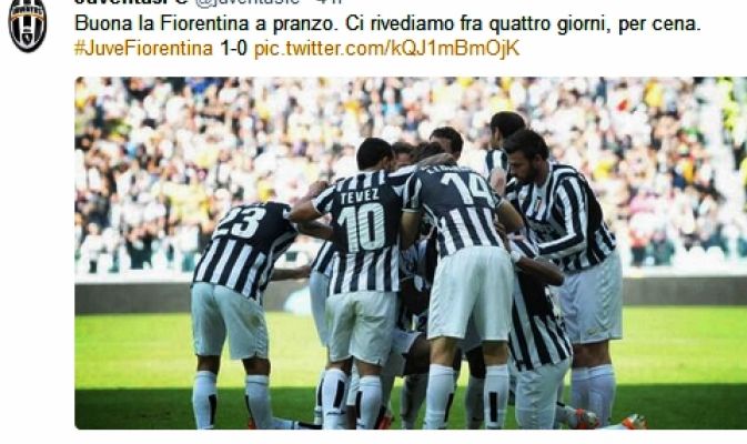 La Juventus celebra così, con uno sfottò su Twitter, la vittoria sulla Viola nel primo dei tre round tra campionato ed Europa Coppa. E dà appuntamento per la serata europea di giovedì, alle 21.05 allo Juventus Stadium.
