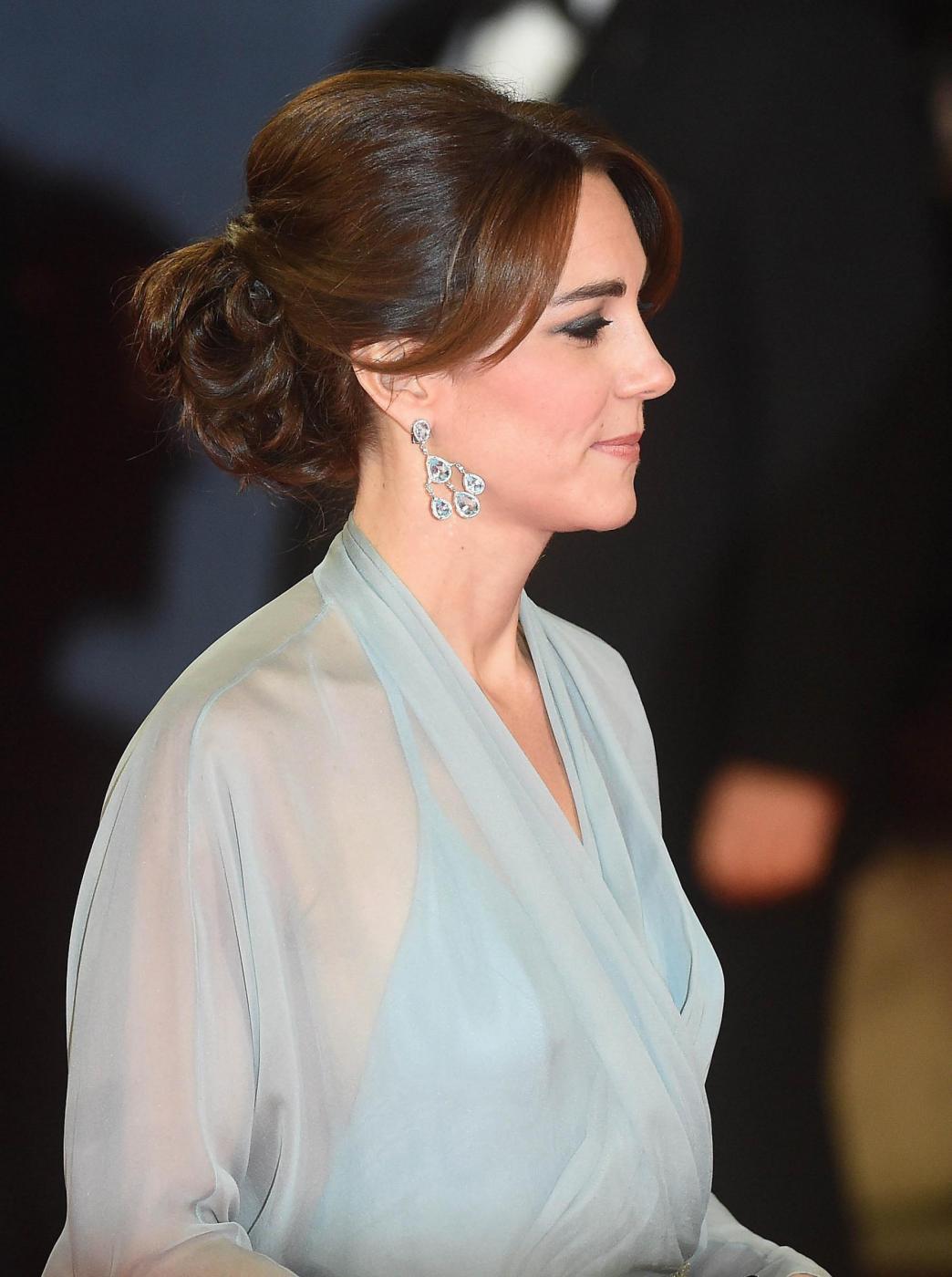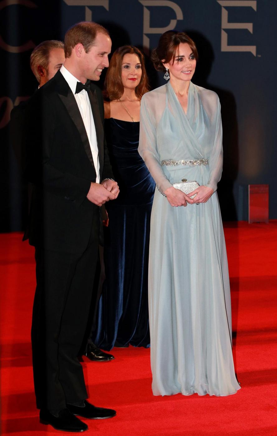 Si tratta di un vestito color cipria ricoperto di paillettes e dettagli di tulle, completato da un paio di sandali Jimmy Choo e da una clutch di raso in tinta firmata Prada. La duchessa ha abbinato delicati orecchini di brillanti.