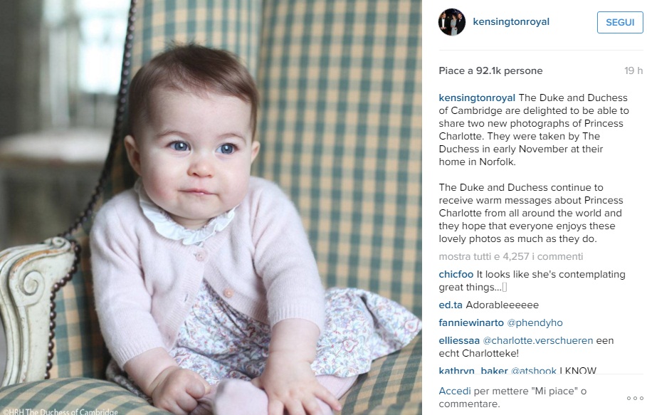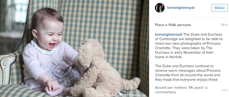 La sorellina del principino George ha compiuto sei mesi proprio il 2 novembre scorso, e in quei giorni la coppia ducale ha scattato alcune foto e le ha poi postate in questi giorni su Instagram e Twitter, sull’account ufficiale di Kensington Palace, Kensington Royal.