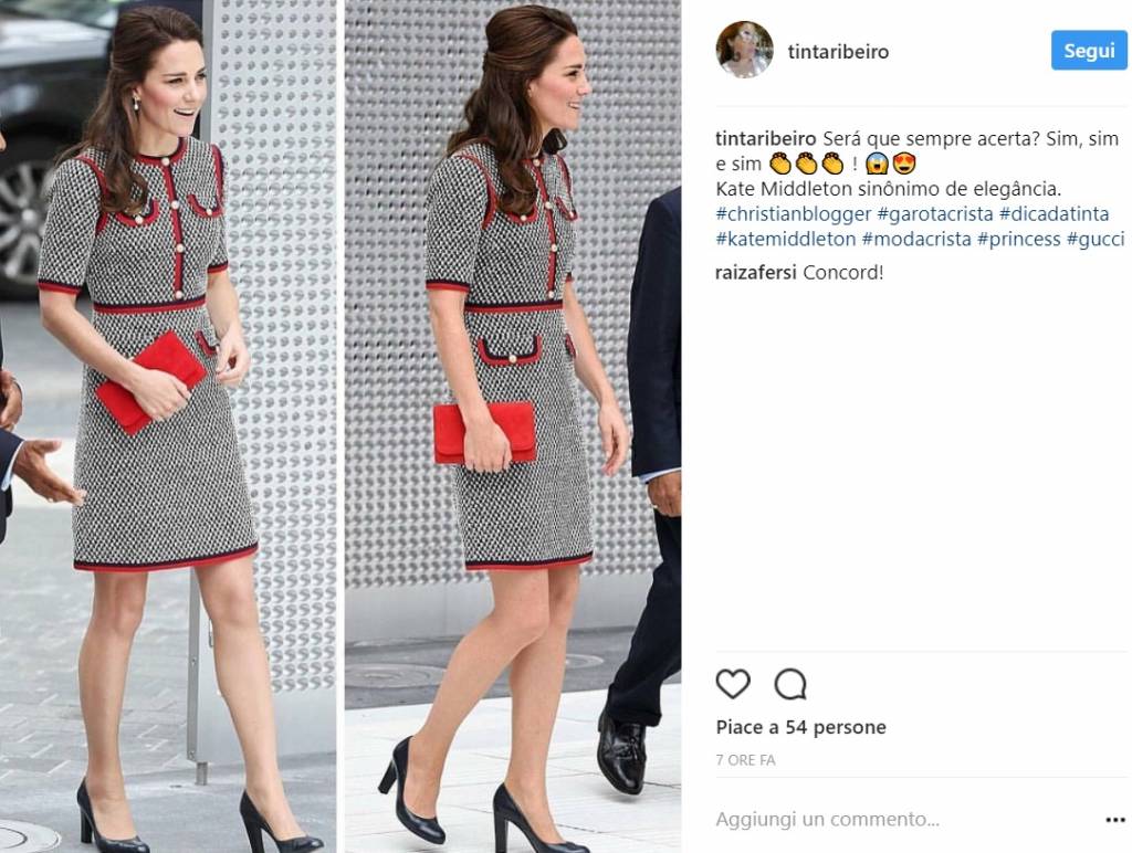 In questo caso, invece, Kate ha scelto un abbigliamento semplice e chic e la gonna, pur essendo corta, non appare affatto volgare perché la Duchessa l’ha sapientemente abbinata a delle decolleté fini ed eleganti, orecchini di perle e cluth rossa. La Regina potrebbe anche soprassedere.