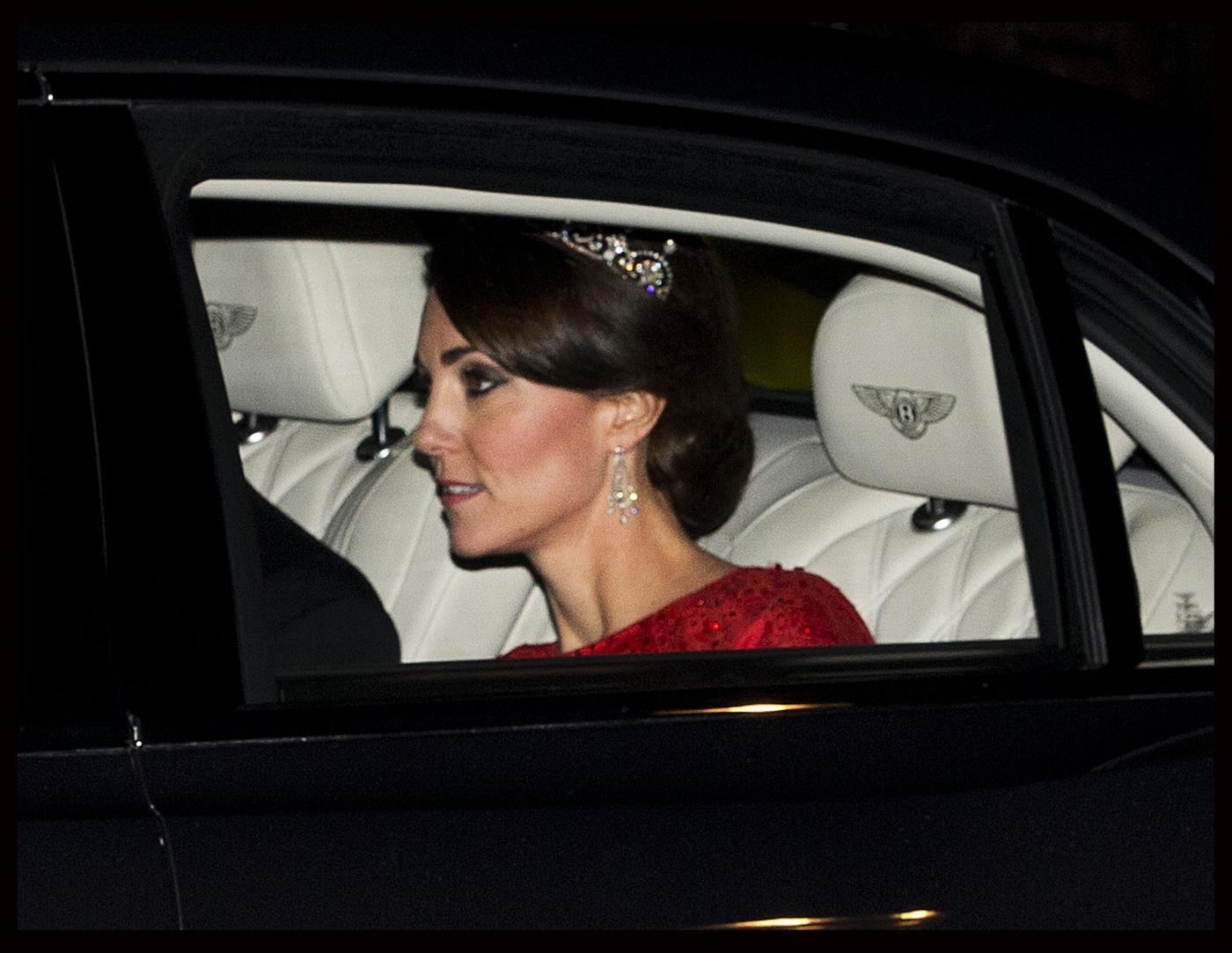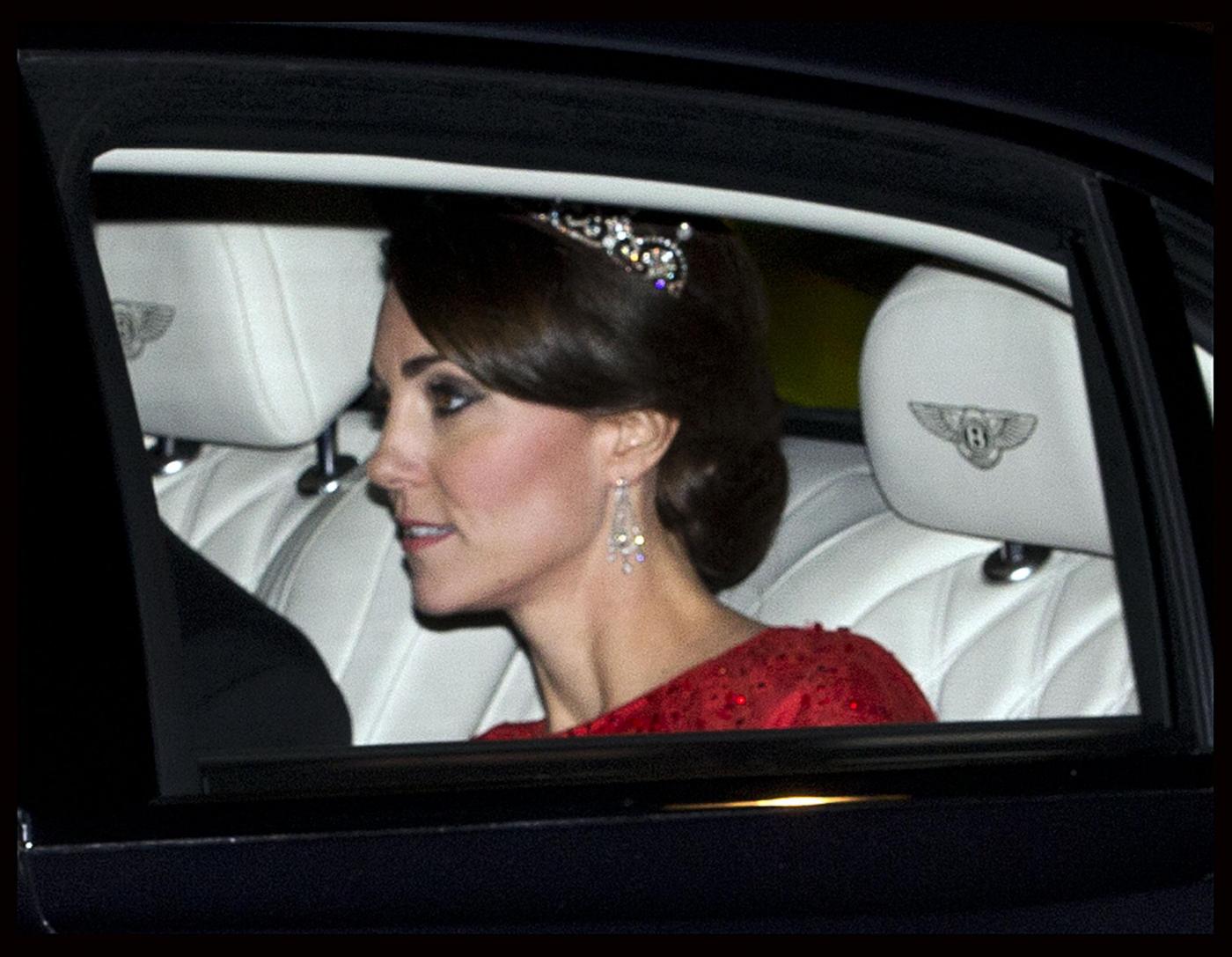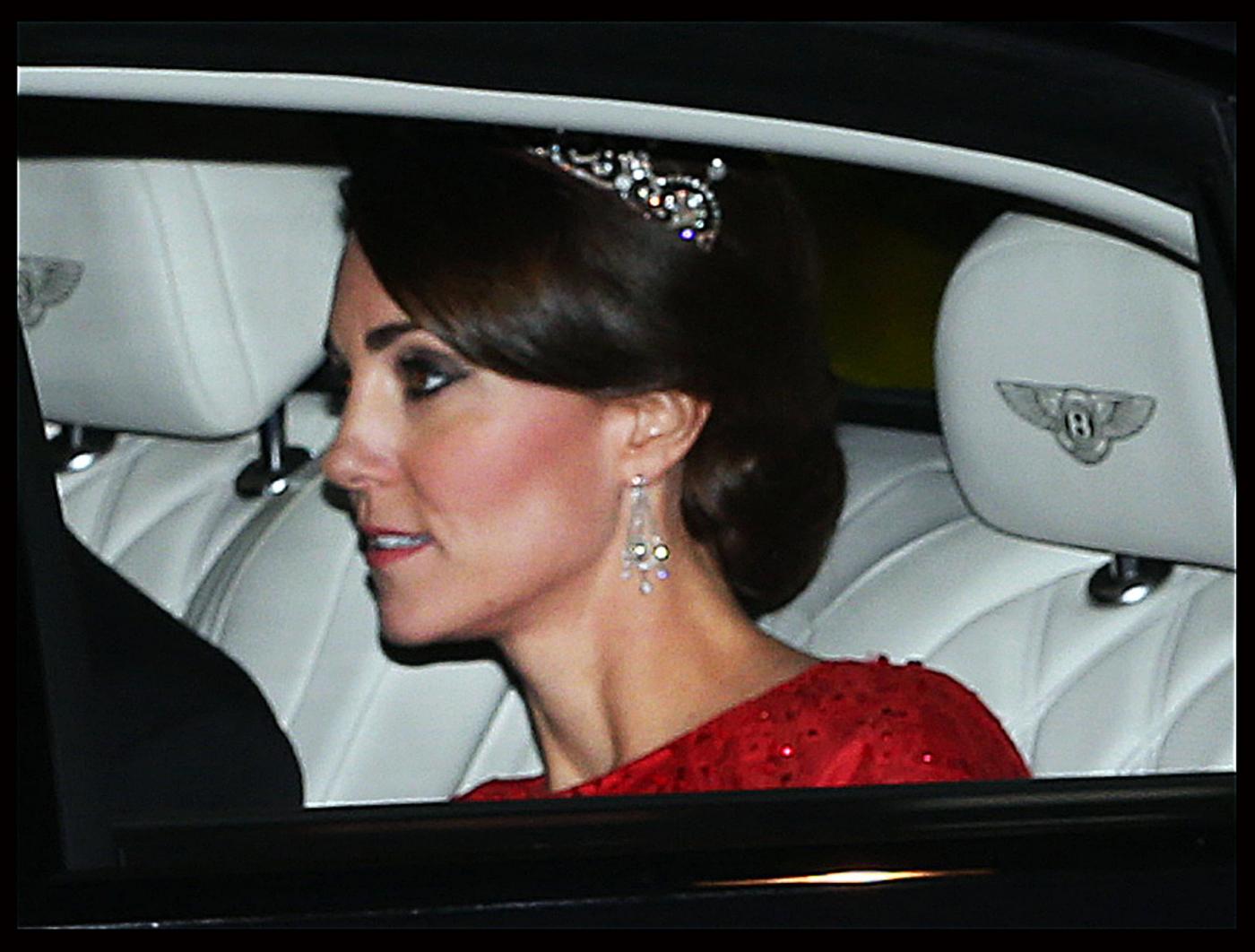 Kate aveva già indossato il diadema il giorno del suo matrimonio e lo aveva sfoggiato di nuovo durante una cena diplomatica nel 2013. La duchessa ha dimostrato ancora una volta di avere stile e buon gusto nella scelta degli accessori. Alla cena è apparsa con i capelli raccolti e degli orecchini a goccia in diamanti.