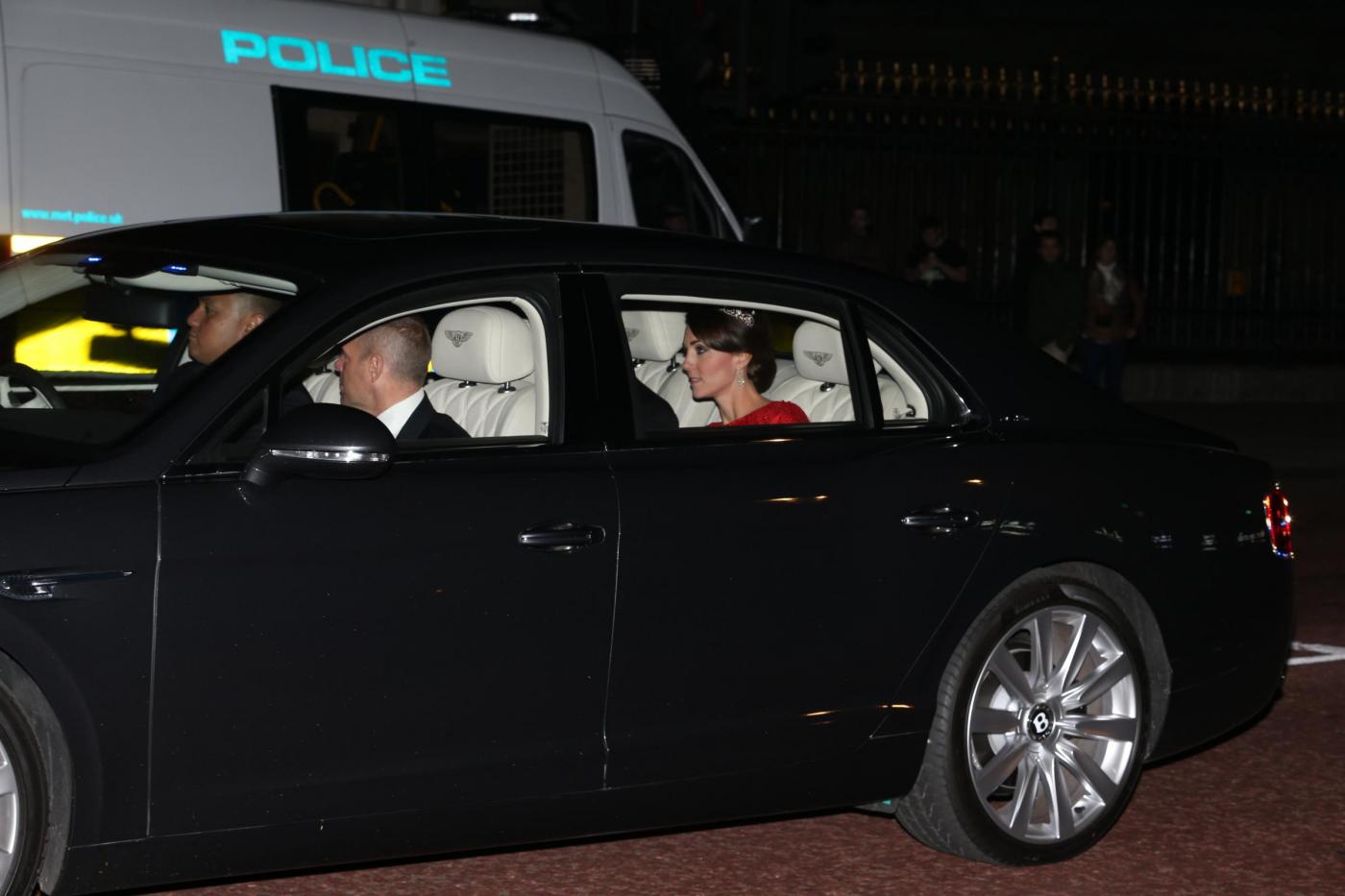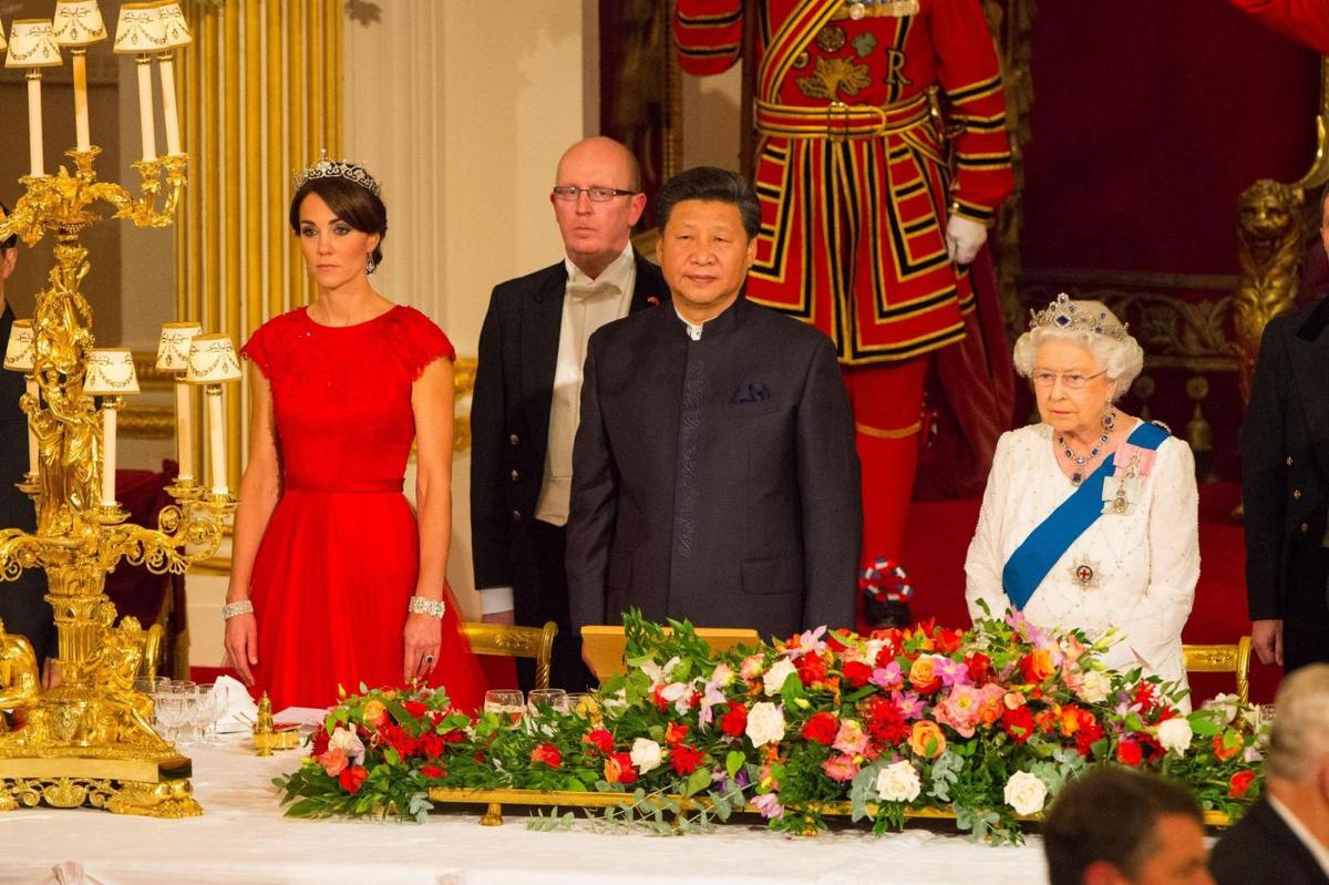 LONDRA – Kate Middleton alla sua prima cena di Stato con il presidente della Cina Xi Jinping, in visita i n questi giorni a Londra. la duchessa di Cambridge è ospite della regina Elisabetta II e partecipa alla cena allestita in gran stile a Buckingham Palace. Kate Middleton si è presentata con un lungo abito rosso disegnato su misura per lei da Jenny Packham. Al collo, ai polsi e alle dita, la Middleton indossa preziosi gioielli tra cui il diadema della famiglia reale. Un gioiello che apparteneva alla Regina Madre e la regina Elisabetta II ed è la terza volta che lo presta alla duchessa di Cambridge.