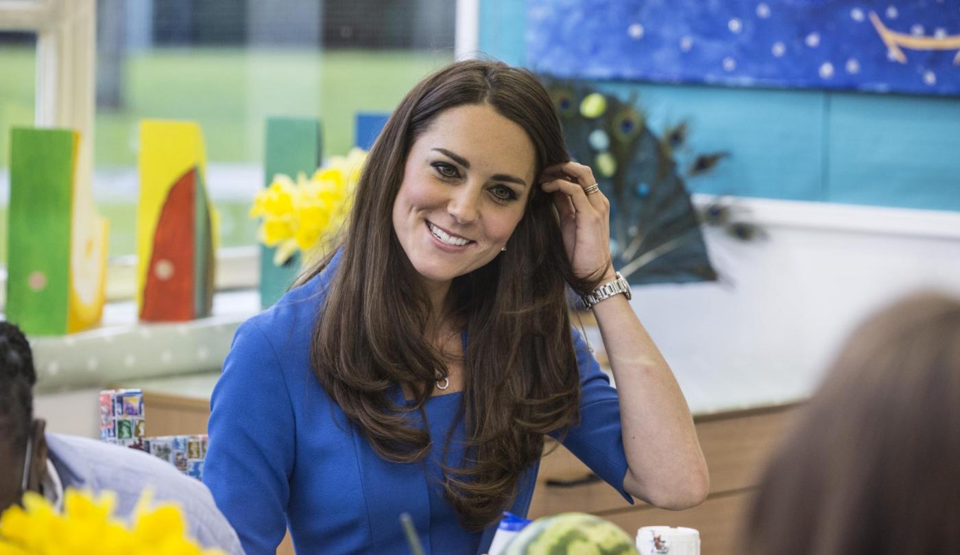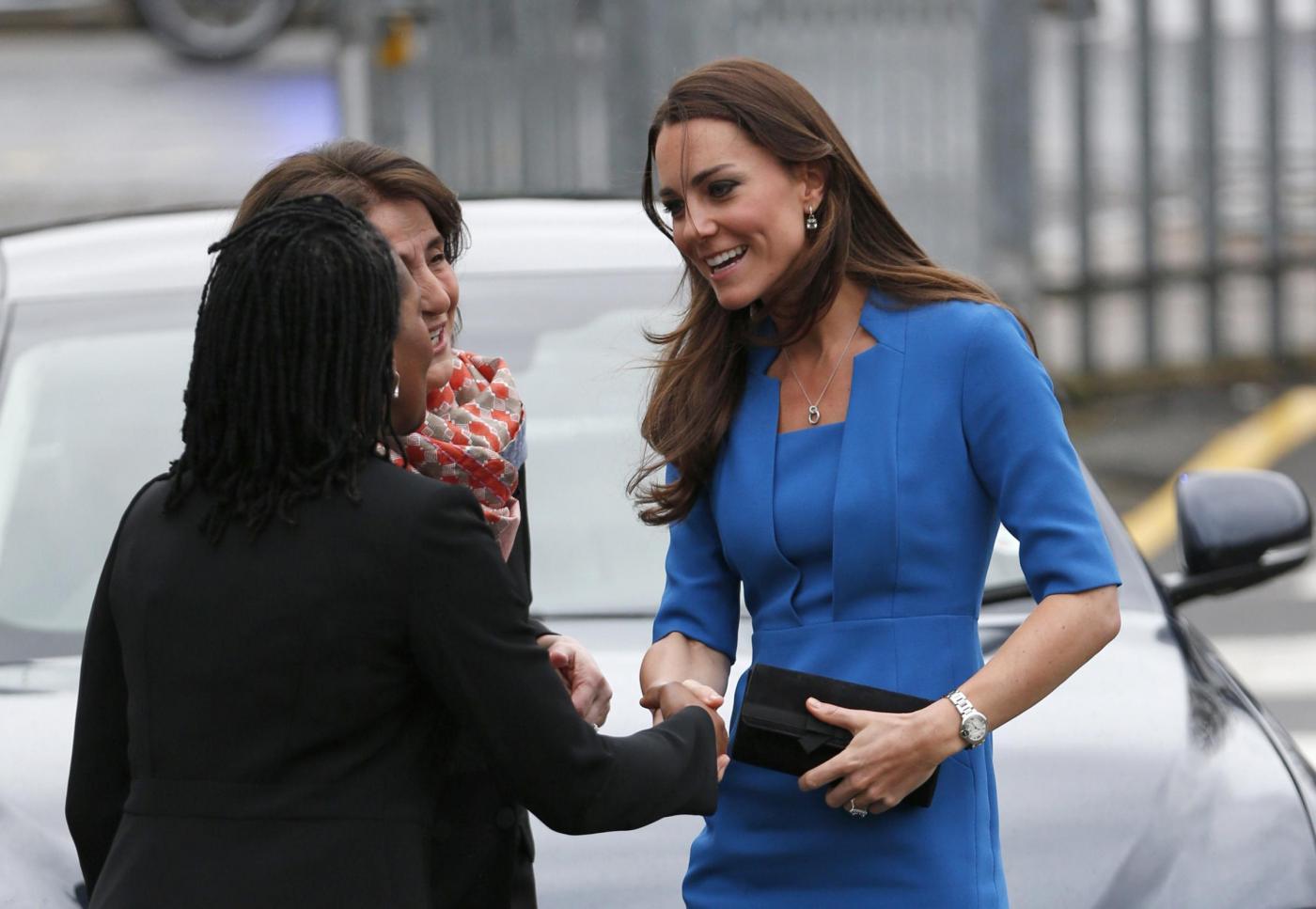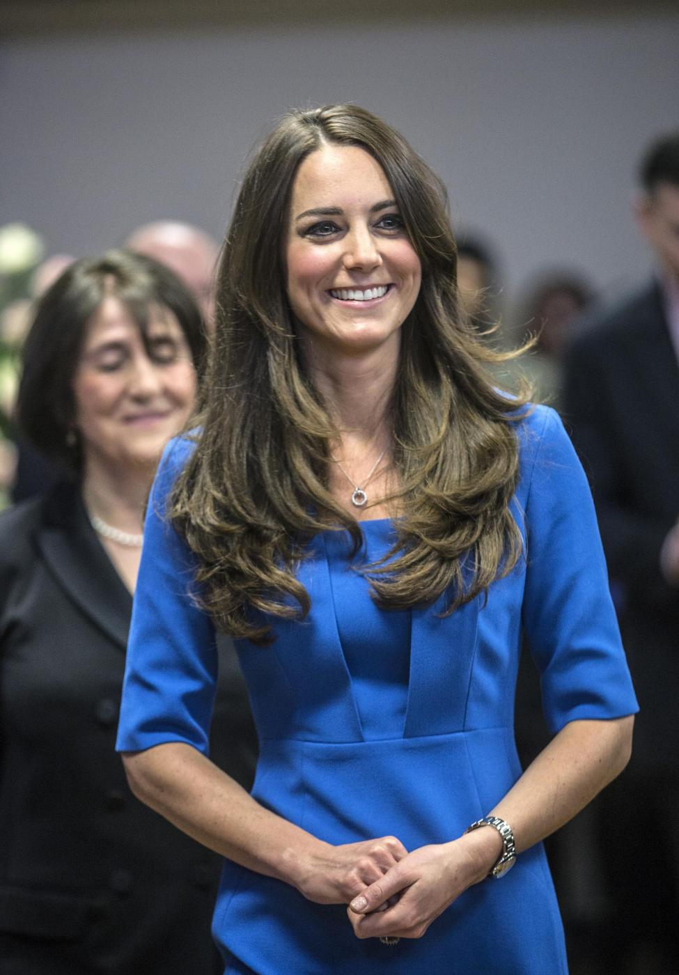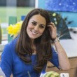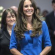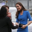 Kate è apparsa sorridente e si è presentata in un completo blu acceso e senza collane di diamanti al collo come durante la prima visita ufficiale avvenuta giorni fa alla National Portrait Gallery.