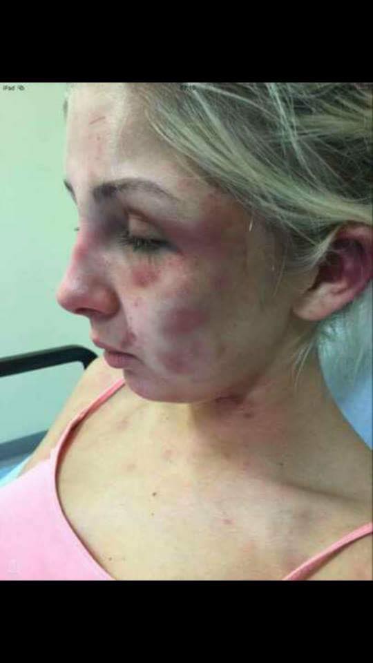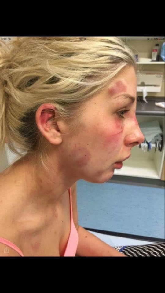 “Scusate per le immagini violente ma come molti di voi sanno a giugno il mio ex fidanzato James McCourt mi ha chiuso nella nostra casa per 4 ore e mi ha colpito ripetutamente fino al punto di dover correre in ospedale. Come vedete ha principalmente colpito la mia faccia. Oggi è stato condannato per tutto quello che mi ha fatto. Inoltre mi ha lasciato una cicatrice.