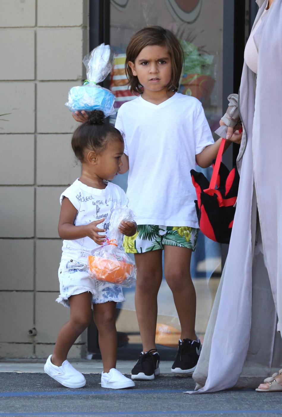 Insieme a lei la figlia North che teneva per mano il cuginetto, figlio di Kourtney, Mason. Subito dopo ha lasciato la palestra per bimbi anche Kourtney, in short di jeans e camicia in macramè, insieme agli altri due suoi figli: in braccio il piccolo Reign di soli otto mesi e per mano Penelope di tre anni. Foto LaPresse.