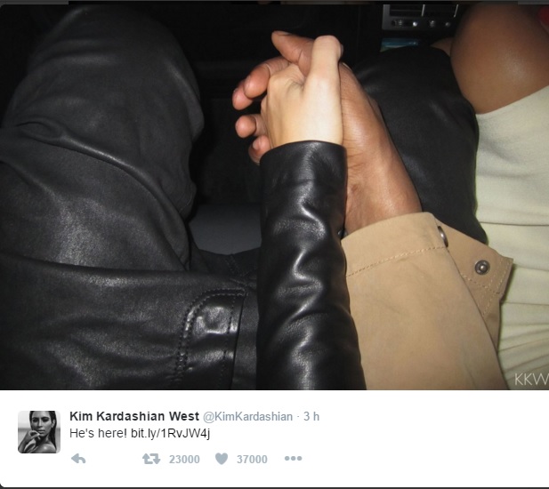 NEW YORK – “Lui è qui”. Kim Kardashian e il marito Kanye West hanno annunciato su Twitter la nascita del loro bambino. Il piccolo è sano è sta bene e i genitori non hanno ancora comunicato il nome del loro secondo figlio, dopo la piccola North 2 anni fa. Il bimbo è nato la mattina di sabato 5 dicembre e l’unica certezza per ora è che non si chiamerà “South“, come aveva scherzato Kim qualche tempo fa.