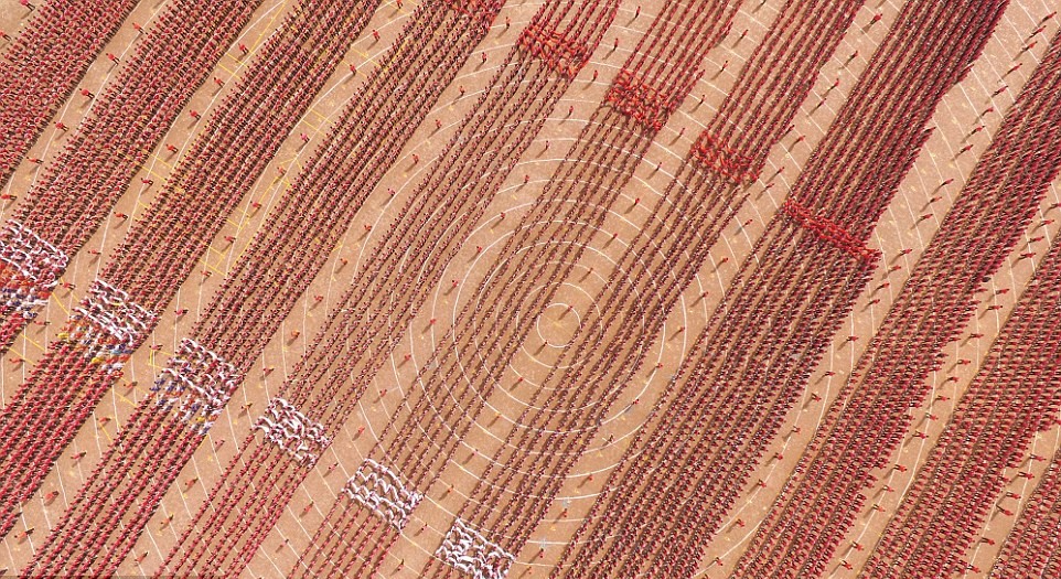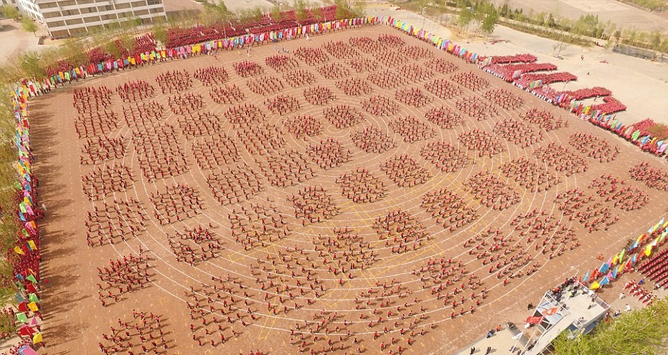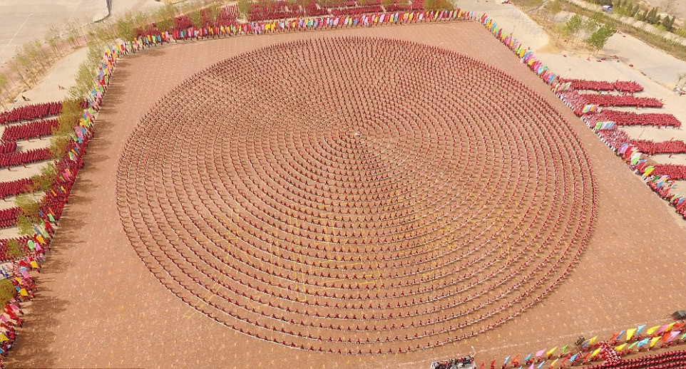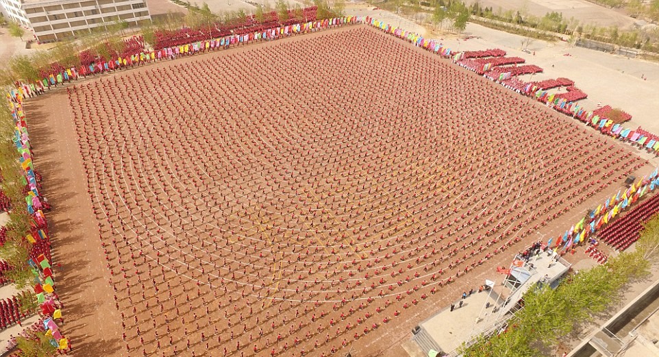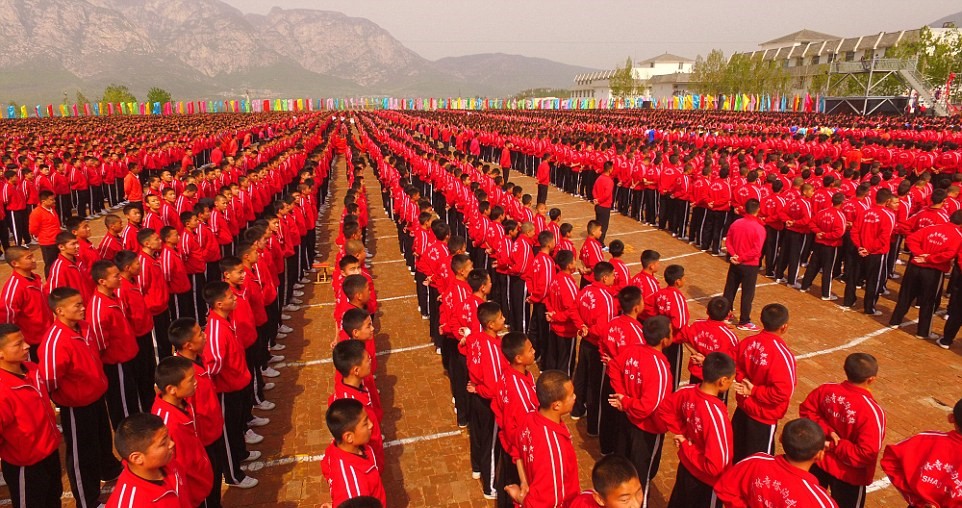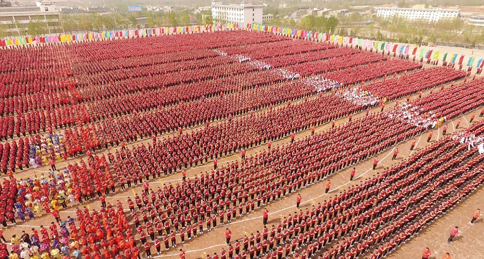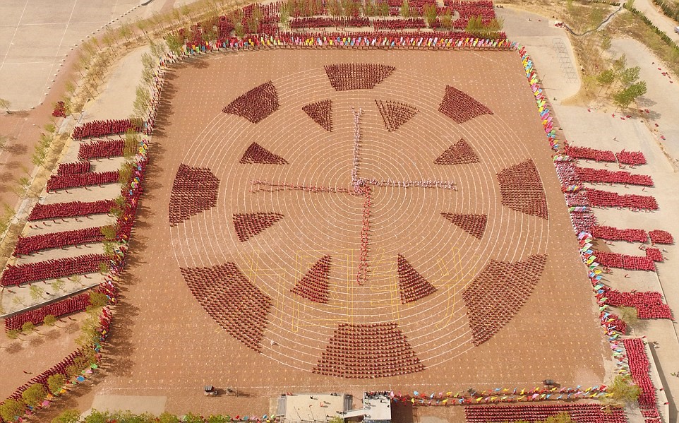 DENGFENG – Una delle migliori scuole di arti marziali della Cina ha realizzato delle stupende forme che hanno coinvolto 26mila ragazzi. Le immagini pubblicate dal People’S Daily Online e riprese dal Daily Mail, mostrano il gruppo di giovani combattenti della scuola di Tagou che si esercita nella città di Dengfeng nella Cina centrale.