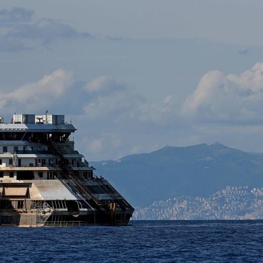 La Costa Concordia era uscita 9 anni fa dai cantieri di Sestri Ponente luccicante come una pietra preziosa. Domenica notte è entrata nel porto di Pra-Voltri sporca di fango e malandata, senza più il fumaiolo giallo e con la scritta ‘Costa Concordia’ sulla fiancata sbiadita dal mare e dalla vergogna.