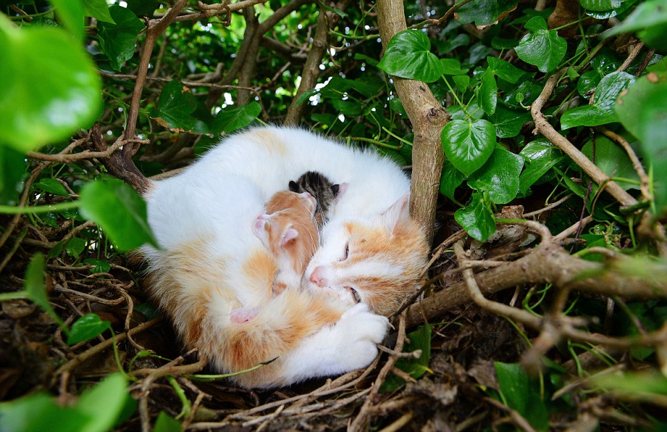 Dopo un paio di settimane passate sull’albero, mamma gatto porterà probabilmente i suoi cuccioli giù e comincerà ad accudirli nel cortile dell’abitazione sottostante. I padroni di casa hanno deciso di voler adottare i cuccioli, non appena questi cresceranno un po’.