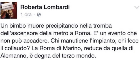 “Non si fa manutenzione, perchè si tratta di piccoli lavori e lì difficilmente girano tante tangenti: chi ne avrebbe vantaggio? Non si fa perchè nessuno la vede, nemmeno noi giornalisti che facciamo inchieste e solleviamo grandi scandali. Ieri potrà anche esserci stato un errore umano, il bimbo preso dal panico ha fatto il passo che un adulto forse non avrebbe tentato. Ma non parlate di fatalità. Quel bimbo è stato assassinato dalla leggerezza e dall’incuria di Roma”.