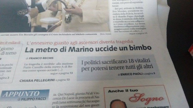 L’articolo, firmato da Franco Bechis, riferisce di un caso analogo successo allo stesso giornalista a Roma l’estate scorsa. In quel caso non ci furono vittime, ma le persone restarono intrappolate nell’ascensore senza aria condizionata per due ore. Ed era il 25 luglio.