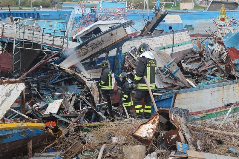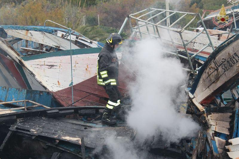 LAMPEDUSA (AGRIGENTO) – Alcune imbarcazioni in legno usate dai migranti per arrivare a Lampedusa e poi portate di fronte il porto nel cosiddetto “cimitero dei barconi”, sono andate a fuoco.
