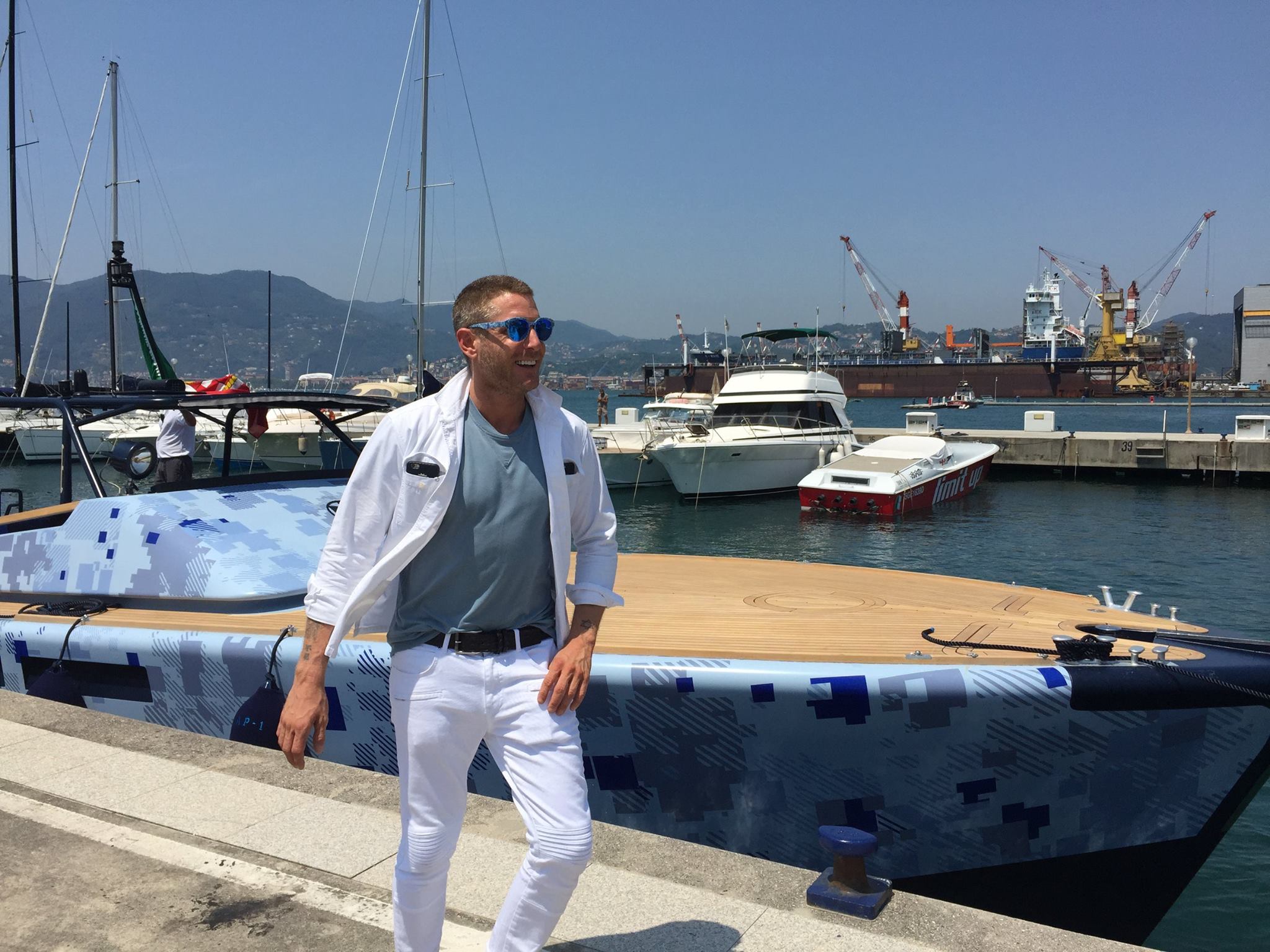 L’MV13 è stato personalizzato da Garage Italia Customs, il marchio di abbigliamento e non solo curato da Lapo in persona. L’intervento di personalizzazione di Lap1 ha previsto una rivisitazione degli esterni attraverso 5 diversi colori verniciati a mano con l’aggiunta di una verniciatura a mano opaca. Alle finiture ispirate al mondo militare come le Fiat 500 stilizzate con i colori della “mimetica” personalizzate da Lapo, si accosta l’inconfondibile colore blu delle storiche imbarcazioni Baglietto. Lapo Elkannn sul suo profilo Facebook ha pubblico il video dell’ianugurazione della barca con la consueta rottira della bottiglia ed alcune immagini dello yacht.