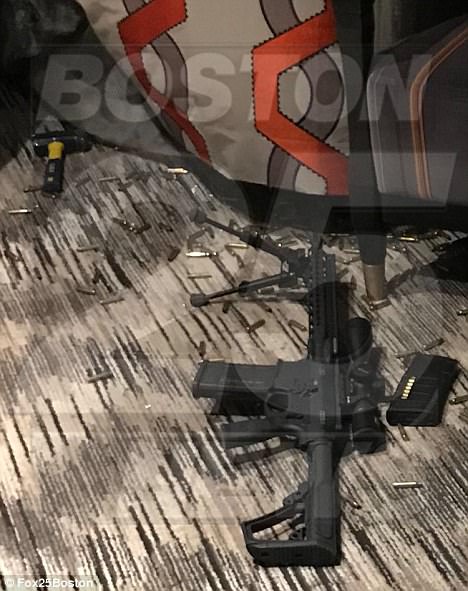 LAS VEGAS – Fucili abbandonati a terra, vetri rotti, porta d’ingresso sfondata e circondata dai sigilli della polizia. In una foto si intravedono chiaramente anche le gambe del killer.