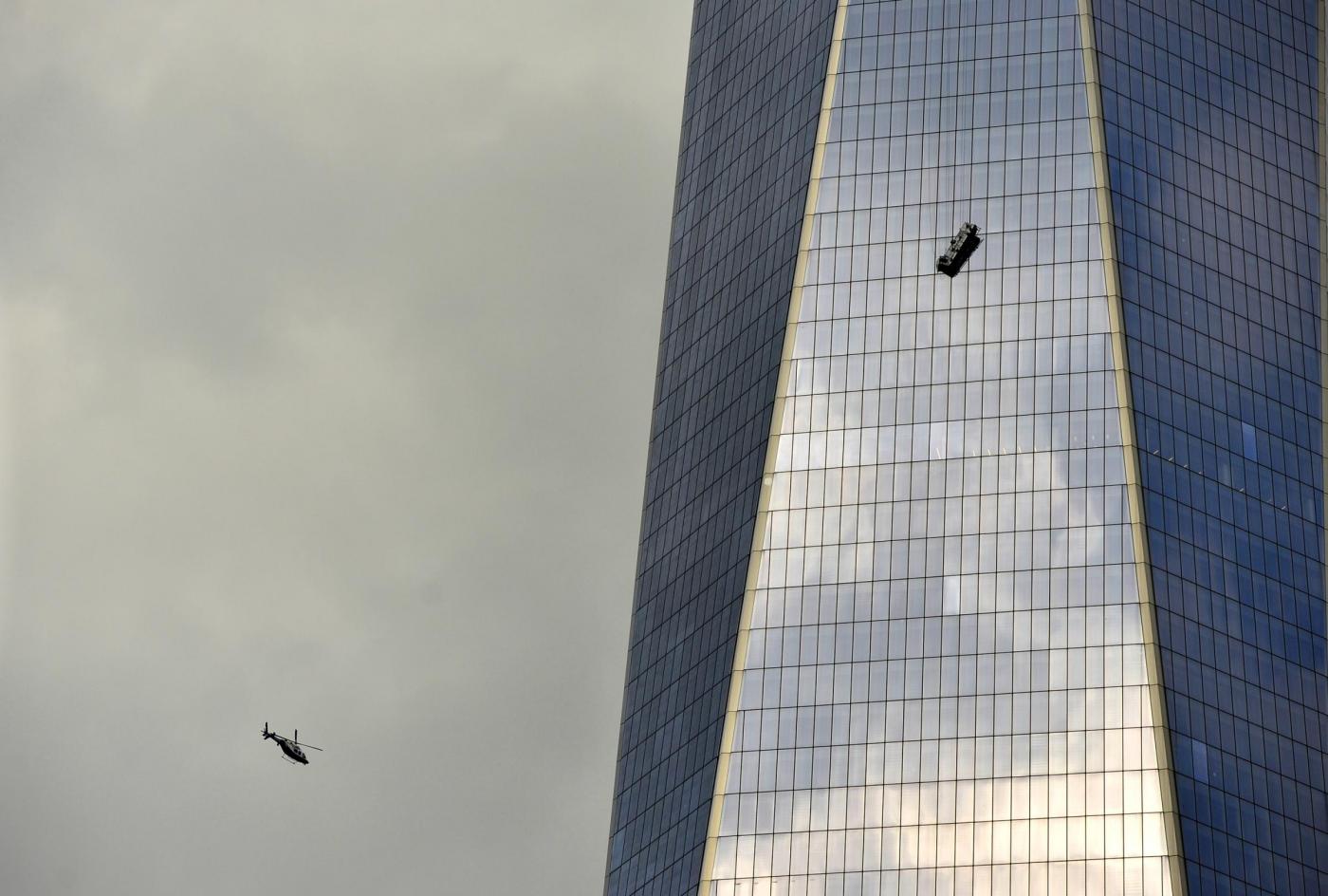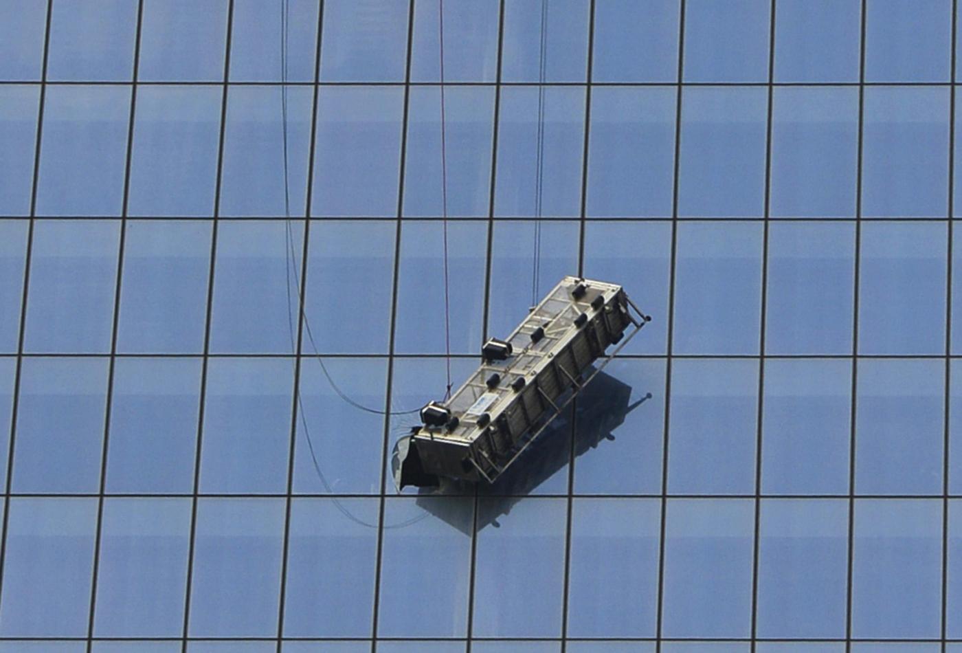 Gli operai erano rimasti intrappolati sull’impalcatura in bilico contro la parete di vetro della torre, appesa soltanto da funi che la collegavano alla vetta del grattacielo. Le tv hanno mostrato gli operai che venivano estratti dal ponteggio per essere fatti entrare attraverso la finestra al 69esimo piano.