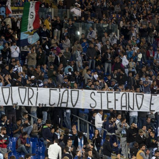 Con questo striscione esposto nella curva nord dell’Olimpico, prima di Lazio-Torino, i tifosi biancocelesti hanno voluto ricordare Stefano e Cristian De Amicis, il papà e il figlio, supporter della Roma, morti in un incidente stradale mentre facevano ritorno a casa dopo aver assistito alla partita di Champions League tra i giallorossi e il Bayern Monaco.