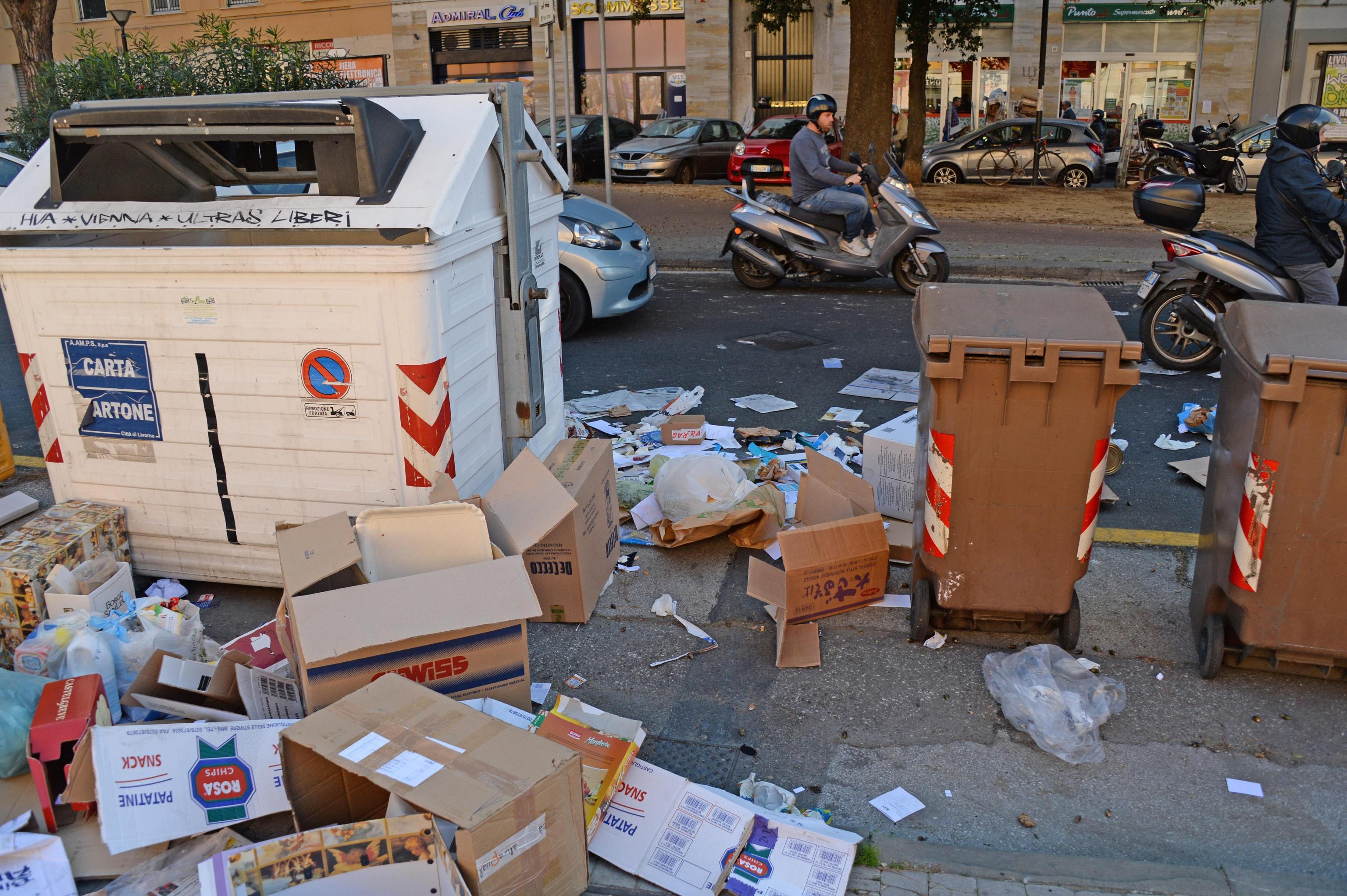 LIVORNO – Cartacce a terra,ovunque. E spazzatura sparpagliata per strada. E i netturbini che invece di raccoglierle attraversano continuamente la strada sulle strisce pedonali mandando il traffico in tilt. Succede a Livorno dove i netturbini sono in scioperano e protestano sia contro la Aamps, municipalizzata che si occupa di igiene comunale, sia contro il sindaco M5s Filippo Nogarin.